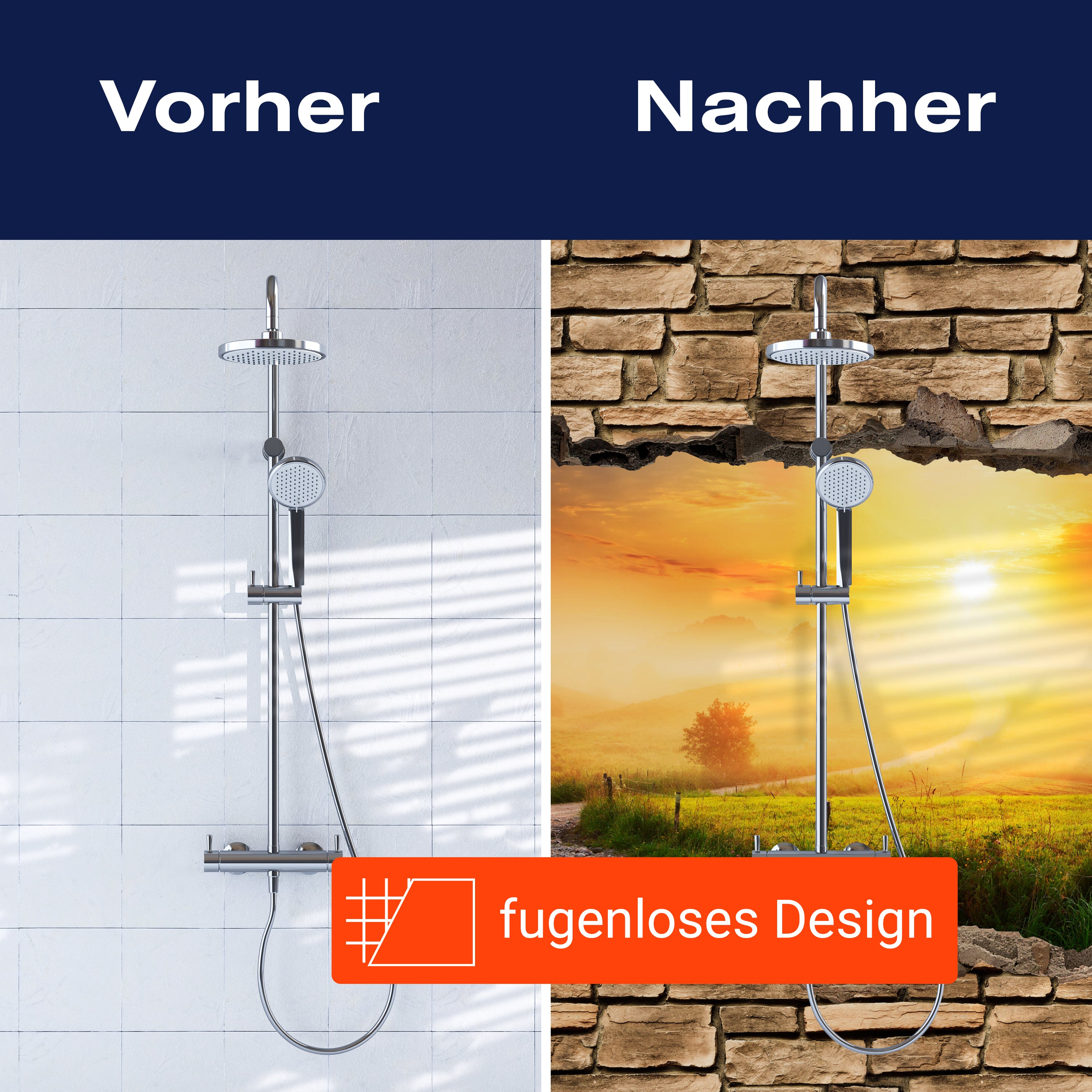 Vergiss die Tage, an denen Spritzer und Flecken deine Dusche ruiniert haben. Mit der Duschrückwand '3D Weg im Morgendunst - Steinmauer' gehören solche Sorgen der Vergangenheit an. Das hochwertige Material sorgt dafür, dass deine Dusche gegen Wasser und andere alltägliche Missgeschicke resistent ist. Ein einfacher Wisch, und sie sieht aus wie neu – ohne den Einsatz von aggressiven Reinigungsmitteln.