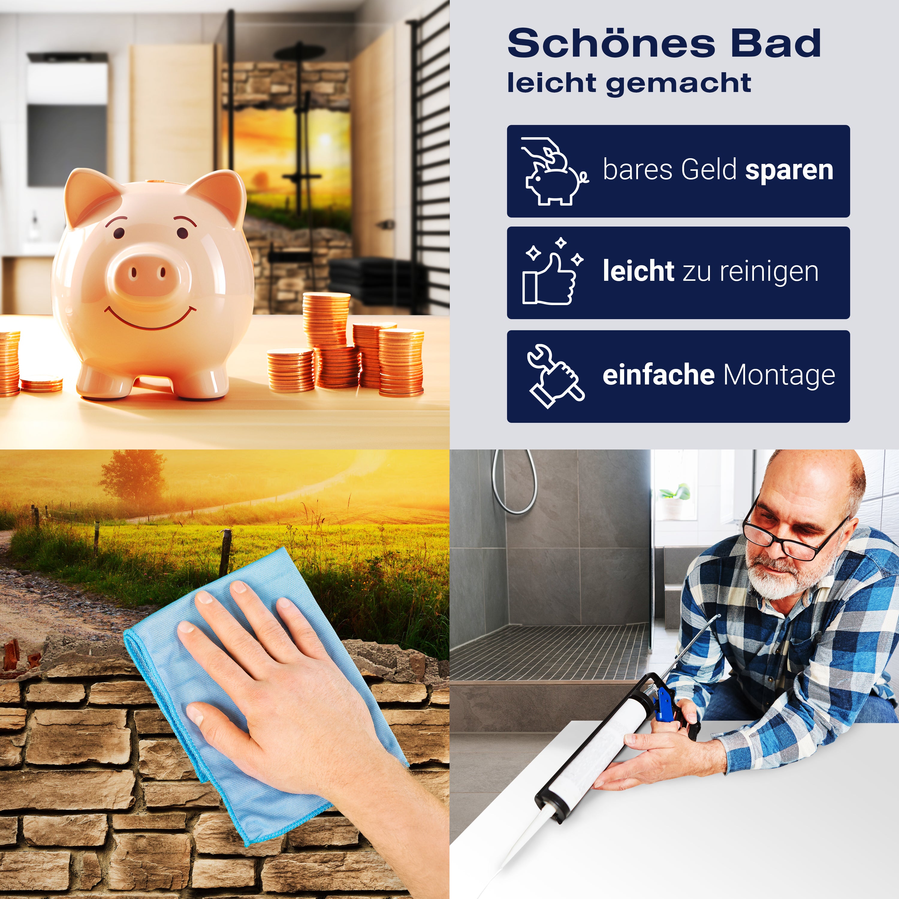 Diese Materialien bieten im Vergleich zu traditionellen Fliesen mehrere Vorteile. Sie haben eine fugenlose Oberfläche, was bedeutet, dass sie weniger anfällig für Schimmelbildung und leichter zu reinigen sind, da sich Schmutz und Kalk nicht in Fugen festsetzen können. Darüber hinaus ermöglichen sie eine schnelle und einfache Renovierung, da sie direkt über bestehenden Fliesen montiert werden können, was Zeit und Kosten spart