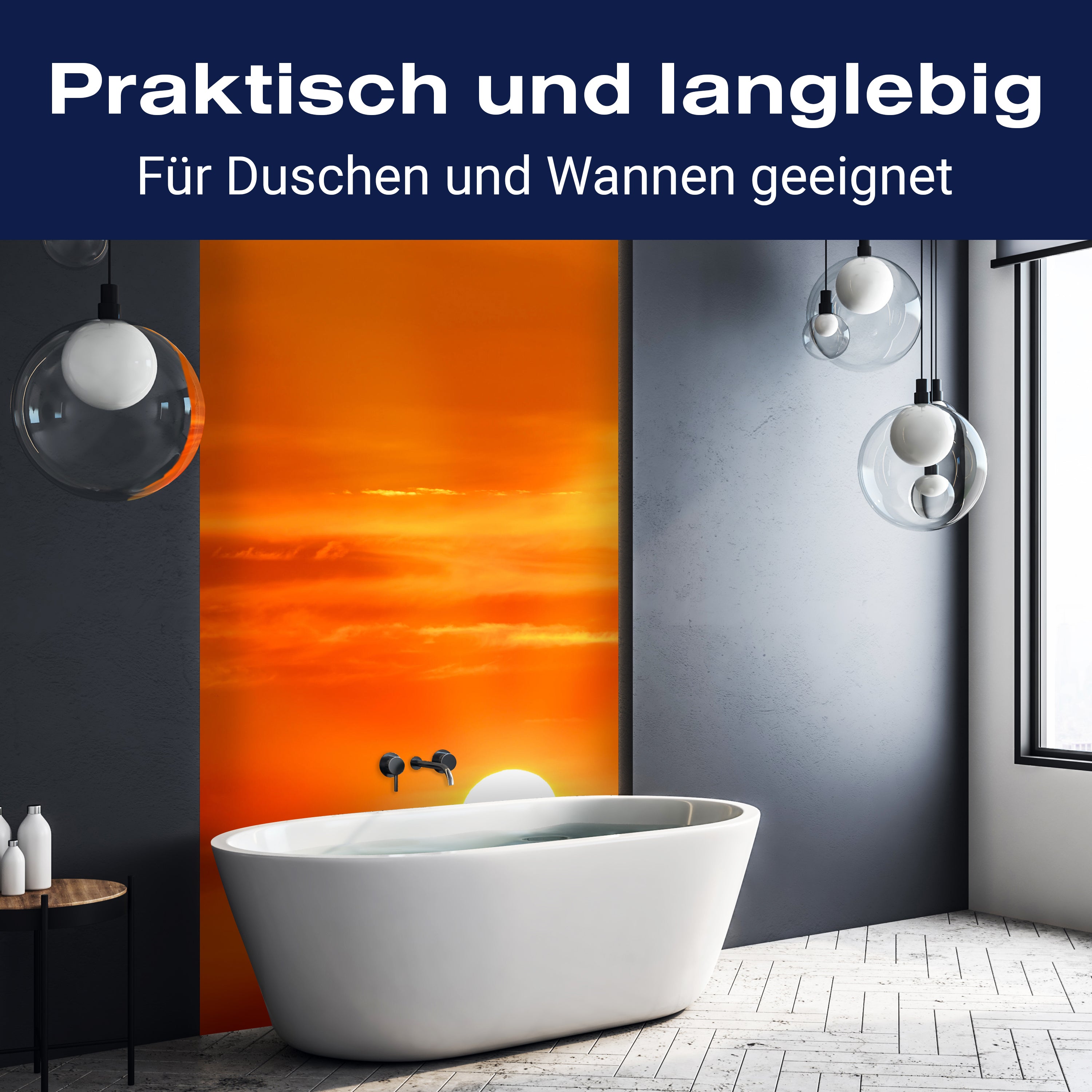 Bist du es leid, auf die langweiligen, schwer zu reinigende Fliesen in deiner Dusche zu schauen? Stell dir vor, wie dein Bad mit einer stilvollen, modernen Rückwand zum Leben erwacht! Unsere Duschwand 'Abendrot Meer' ist nicht nur ein optisches Highlight, sondern auch praktisch und pflegeleicht.