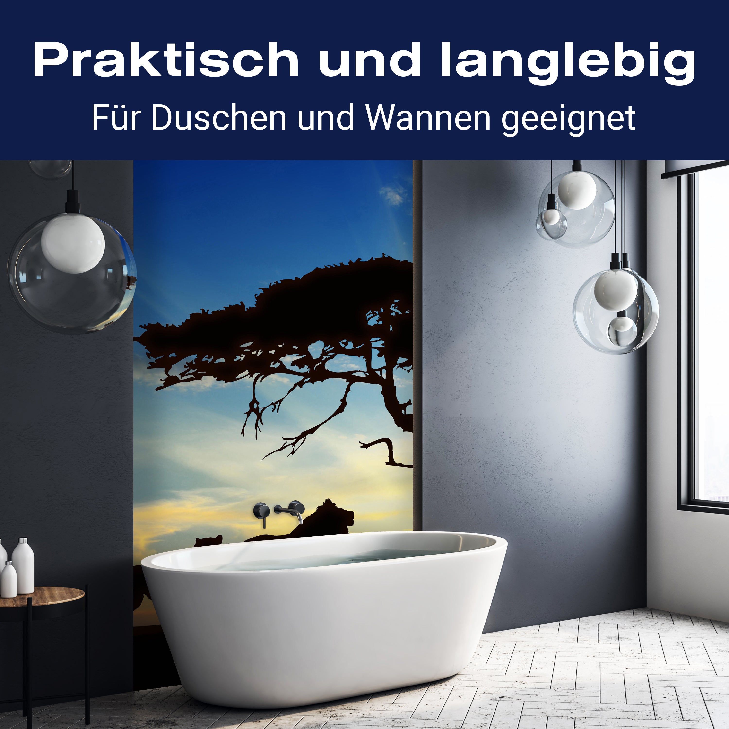 Vergiss die Tage, an denen Spritzer und Flecken deine Dusche ruiniert haben. Mit der Duschrückwand 'Afrikanische Schatten' gehören solche Sorgen der Vergangenheit an. Das hochwertige Material sorgt dafür, dass deine Dusche gegen Wasser und andere alltägliche Missgeschicke resistent ist. Ein einfacher Wisch, und sie sieht aus wie neu – ohne den Einsatz von aggressiven Reinigungsmitteln.
