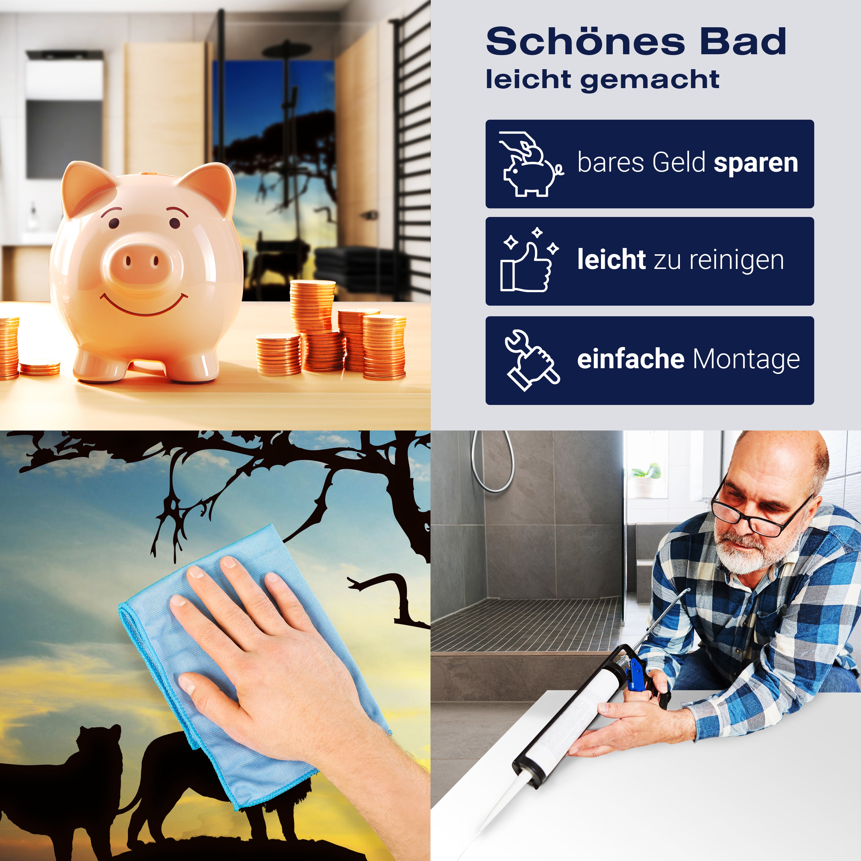 Bist du es leid, auf die langweiligen, schwer zu reinigende Fliesen in deiner Dusche zu schauen? Stell dir vor, wie dein Bad mit einer stilvollen, modernen Rückwand zum Leben erwacht! Unsere Duschwand 'Afrikanische Schatten' ist nicht nur ein optisches Highlight, sondern auch praktisch und pflegeleicht.