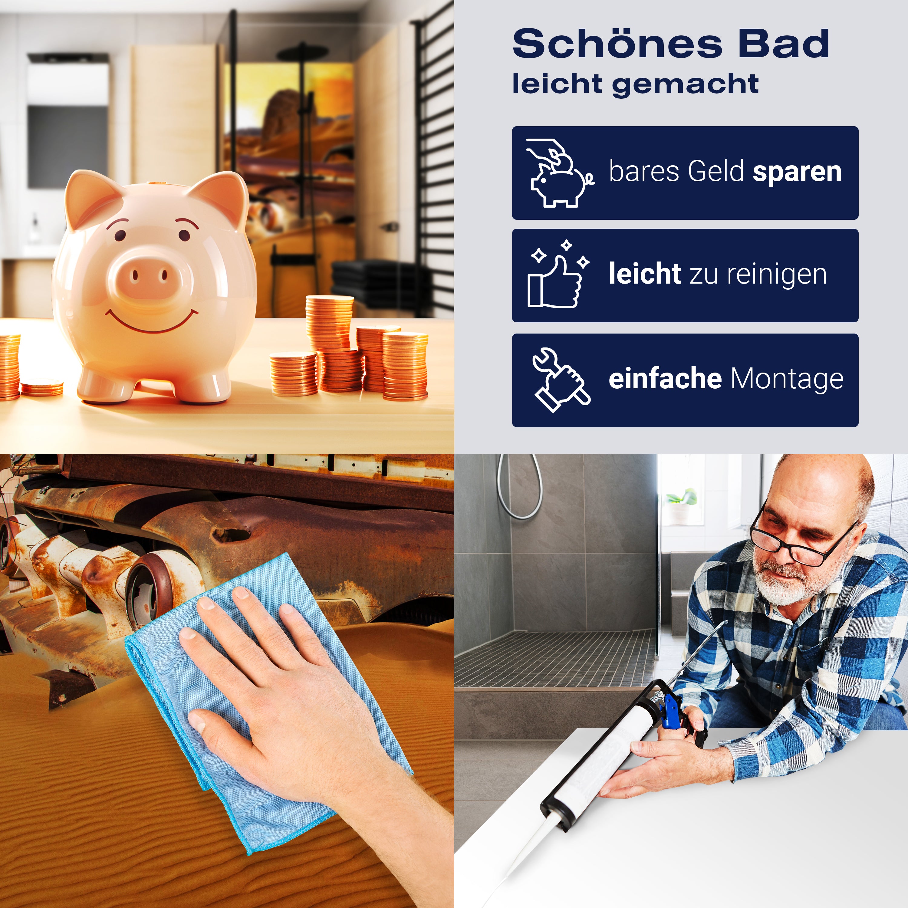 Diese Materialien bieten im Vergleich zu traditionellen Fliesen mehrere Vorteile. Sie haben eine fugenlose Oberfläche, was bedeutet, dass sie weniger anfällig für Schimmelbildung und leichter zu reinigen sind, da sich Schmutz und Kalk nicht in Fugen festsetzen können. Darüber hinaus ermöglichen sie eine schnelle und einfache Renovierung, da sie direkt über bestehenden Fliesen montiert werden können, was Zeit und Kosten spart