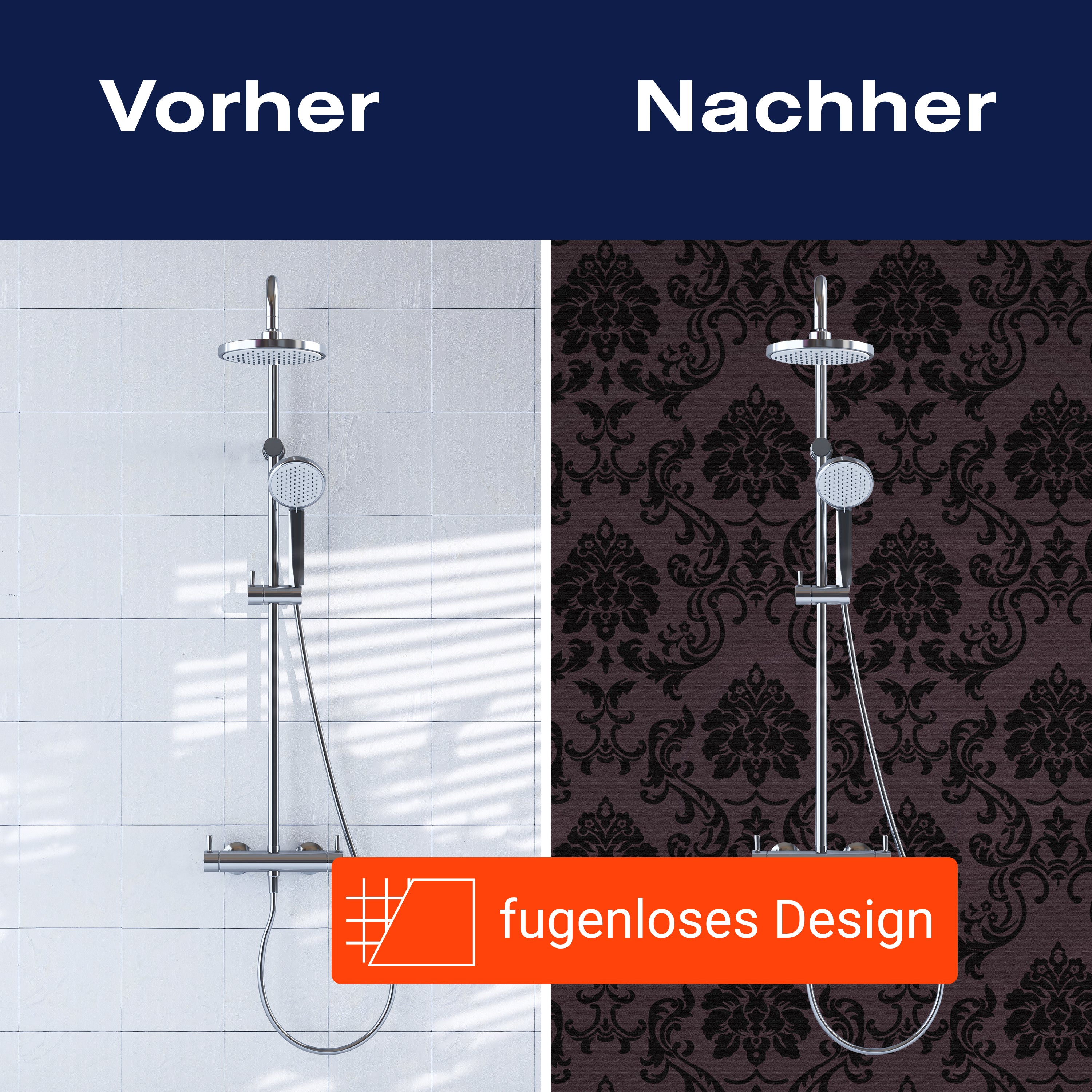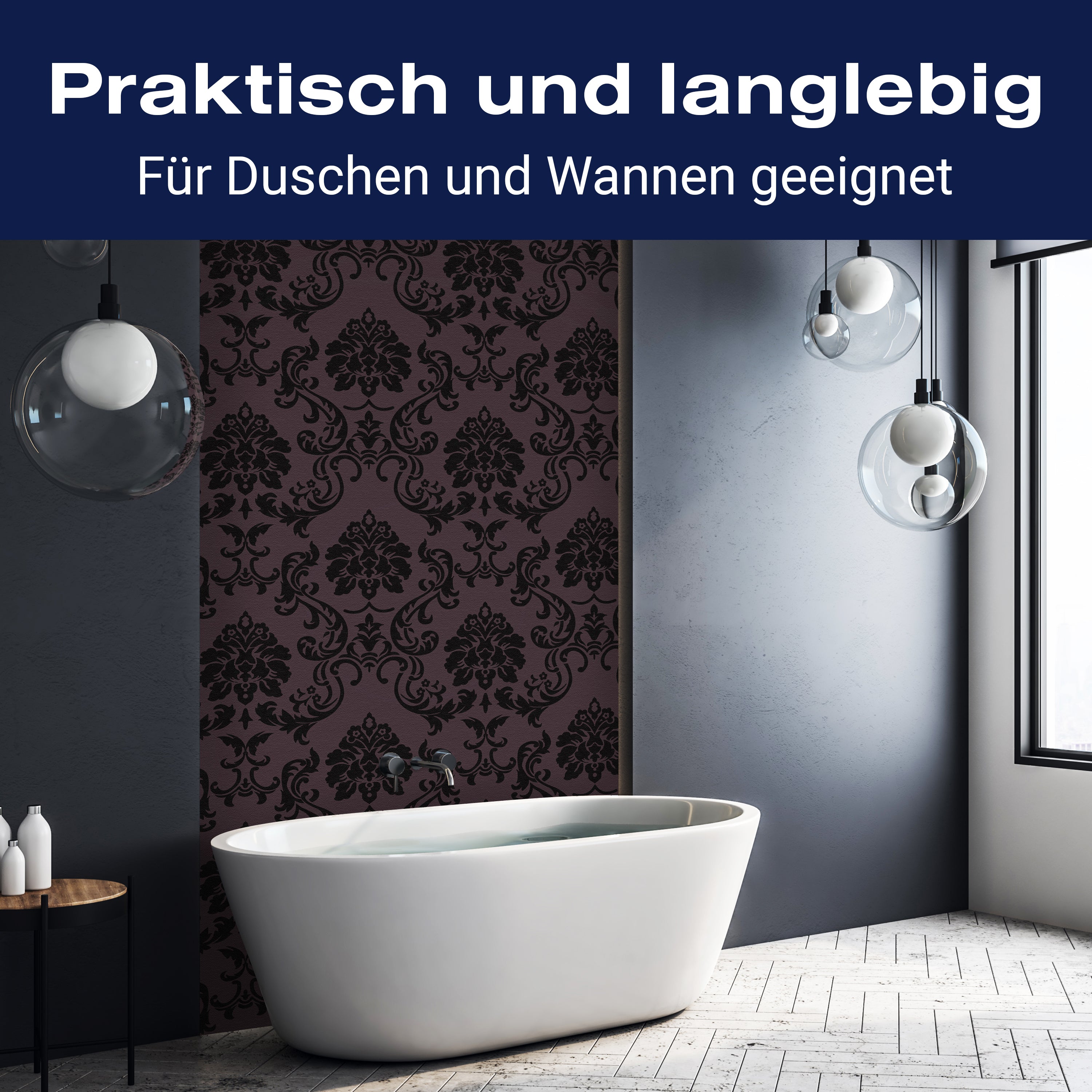Bist du es leid, auf die langweiligen, schwer zu reinigende Fliesen in deiner Dusche zu schauen? Stell dir vor, wie dein Bad mit einer stilvollen, modernen Rückwand zum Leben erwacht! Unsere Duschwand 'Barockmuster Schwarz' ist nicht nur ein optisches Highlight, sondern auch praktisch und pflegeleicht.