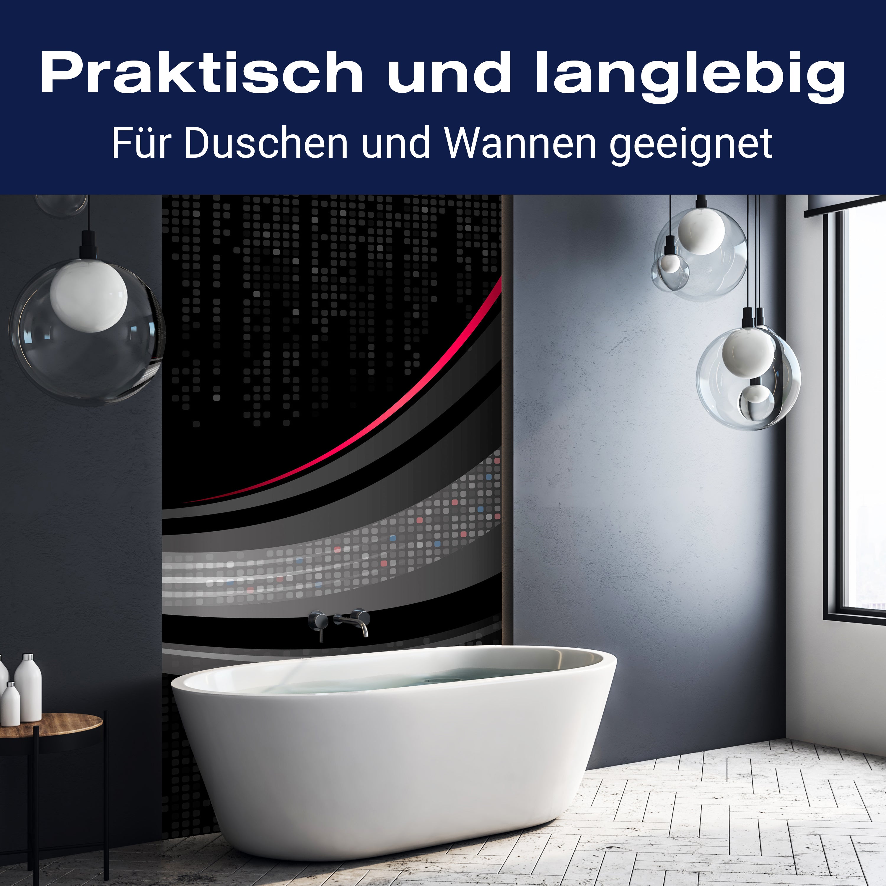 Bist du es leid, auf die langweiligen, schwer zu reinigende Fliesen in deiner Dusche zu schauen? Stell dir vor, wie dein Bad mit einer stilvollen, modernen Rückwand zum Leben erwacht! Unsere Duschwand 'Black Waves' ist nicht nur ein optisches Highlight, sondern auch praktisch und pflegeleicht.