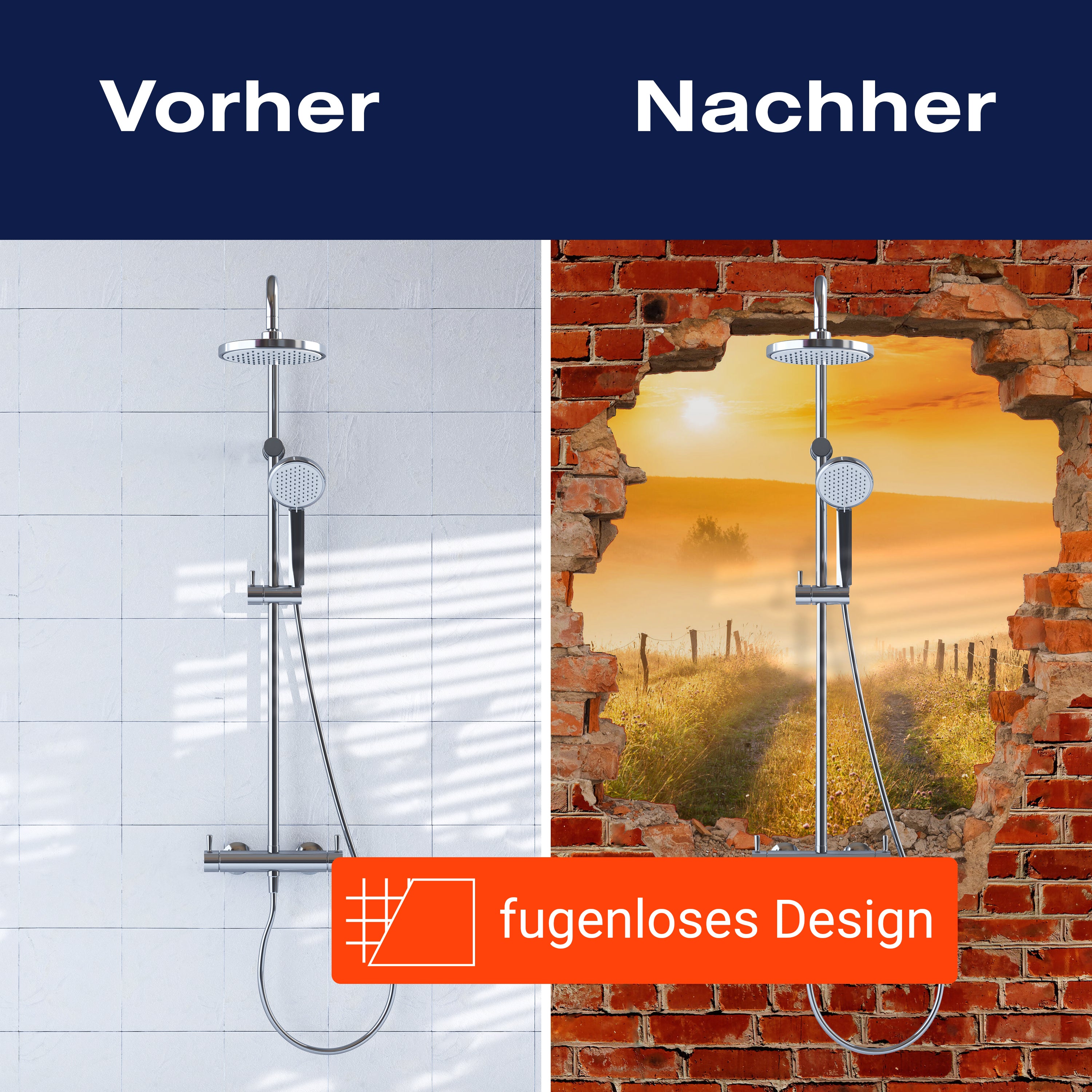 Bist du es leid, auf die langweiligen, schwer zu reinigende Fliesen in deiner Dusche zu schauen? Stell dir vor, wie dein Bad mit einer stilvollen, modernen Rückwand zum Leben erwacht! Unsere Duschwand 'Diesige Landschaft - Roter Backstein' ist nicht nur ein optisches Highlight, sondern auch praktisch und pflegeleicht.