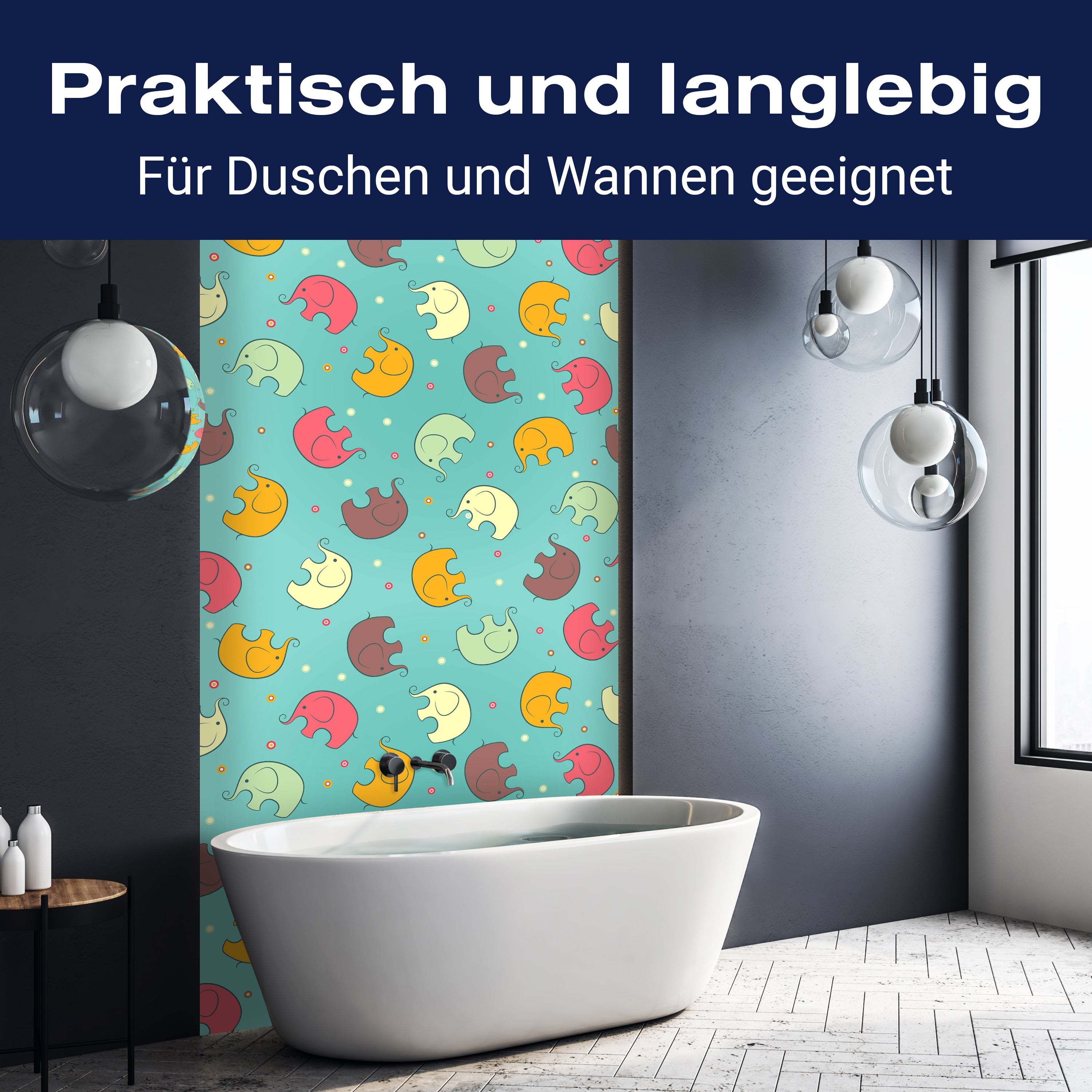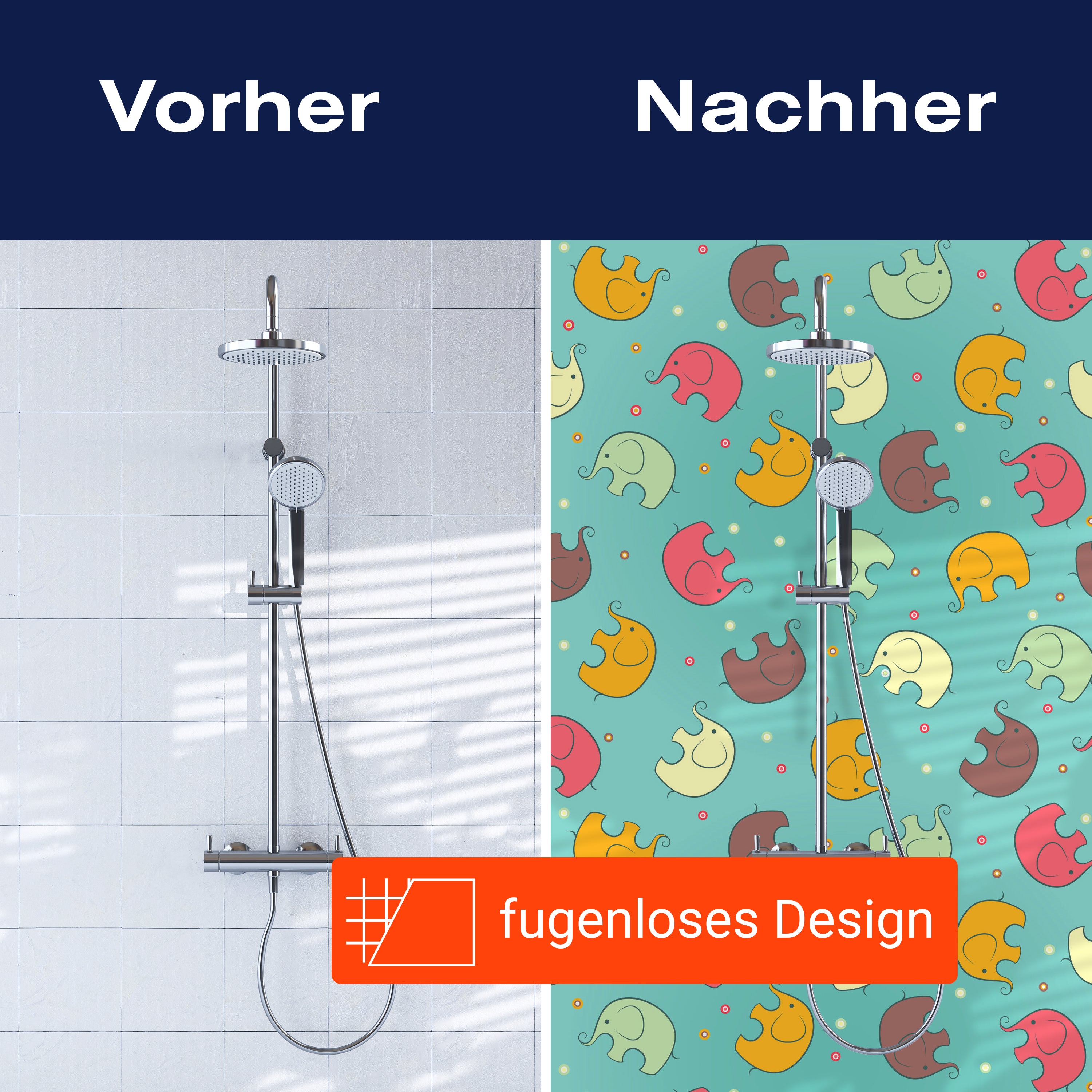 Bist du es leid, auf die langweiligen, schwer zu reinigende Fliesen in deiner Dusche zu schauen? Stell dir vor, wie dein Bad mit einer stilvollen, modernen Rückwand zum Leben erwacht! Unsere Duschwand 'Elefant gemusterten Hintergrund' ist nicht nur ein optisches Highlight, sondern auch praktisch und pflegeleicht.