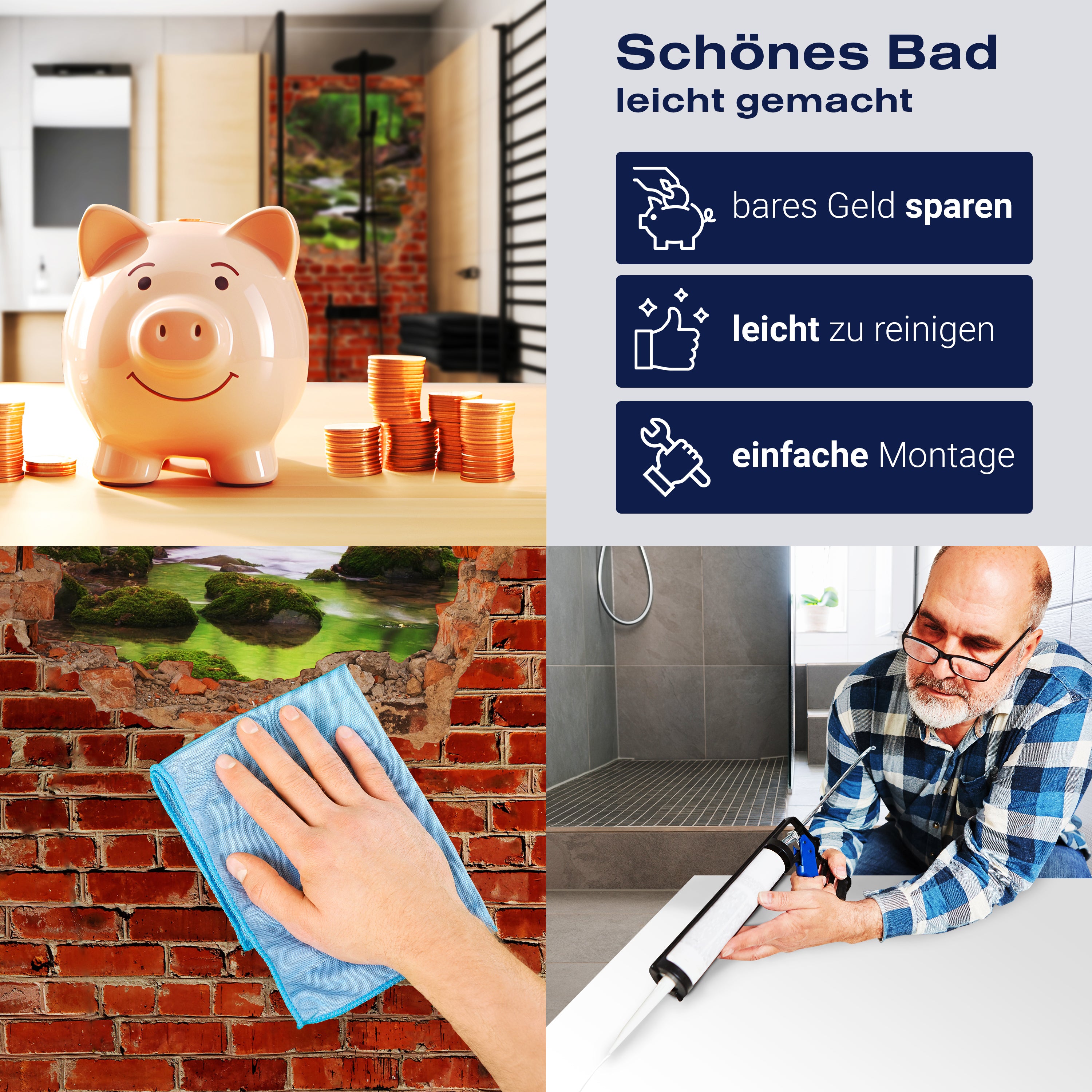 Diese Materialien bieten im Vergleich zu traditionellen Fliesen mehrere Vorteile. Sie haben eine fugenlose Oberfläche, was bedeutet, dass sie weniger anfällig für Schimmelbildung und leichter zu reinigen sind, da sich Schmutz und Kalk nicht in Fugen festsetzen können. Darüber hinaus ermöglichen sie eine schnelle und einfache Renovierung, da sie direkt über bestehenden Fliesen montiert werden können, was Zeit und Kosten spart