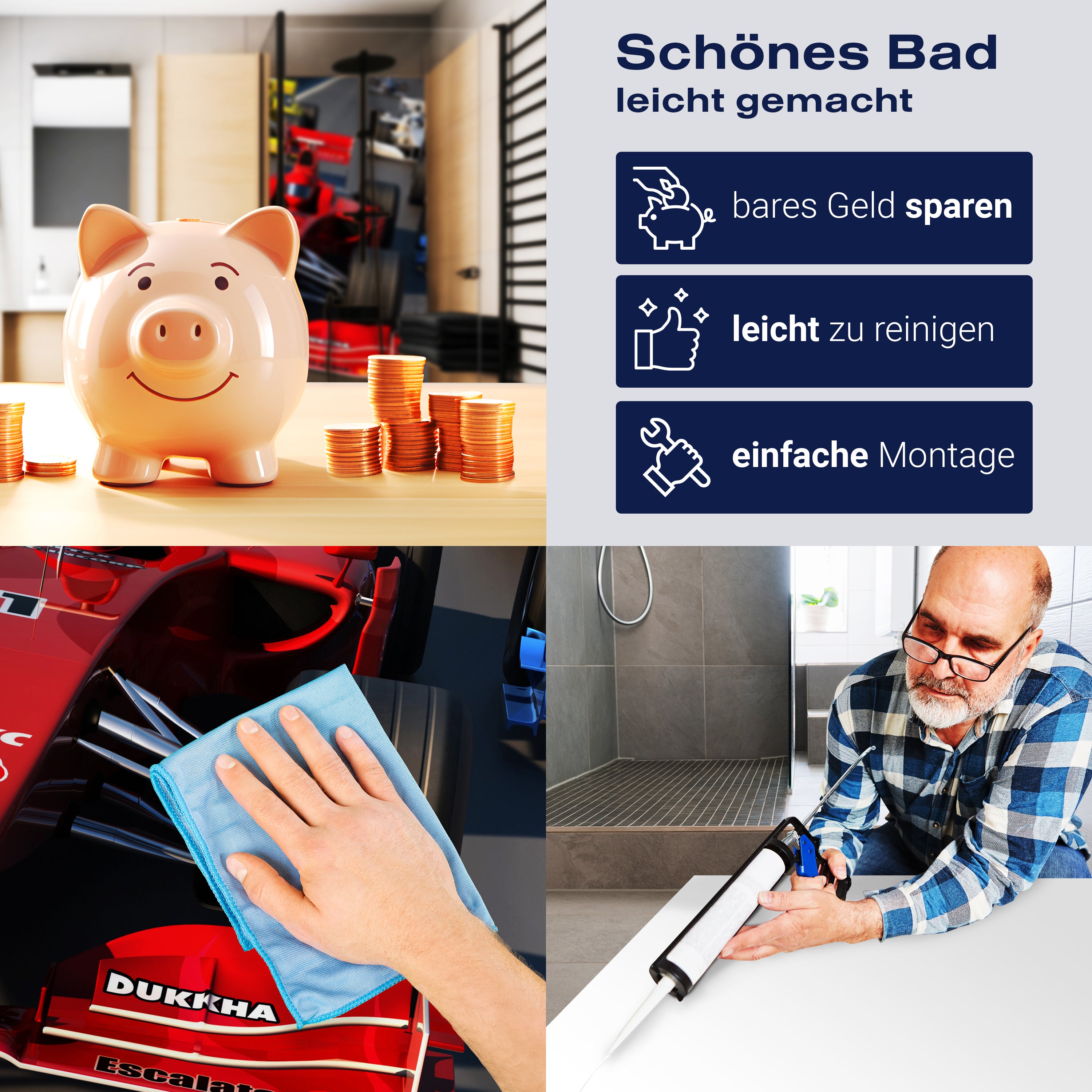 ür eine optimale Langlebigkeit ist es wichtig, die Duschrückwände richtig zu pflegen. Sie sollten regelmäßig mit einem weichen Tuch und milden Reinigungsmitteln gereinigt werden, um Kalk- und Seifenrückstände zu entfernen. Scheuermittel oder aggressive Chemikalien sollten vermieden werden, da diese die Oberfläche beschädigen können. Die fugenlose Oberfläche vereinfacht die Reinigung erheblich und trägt dazu bei, dass die Wandverkleidung hygienisch und ansprechend bleibt