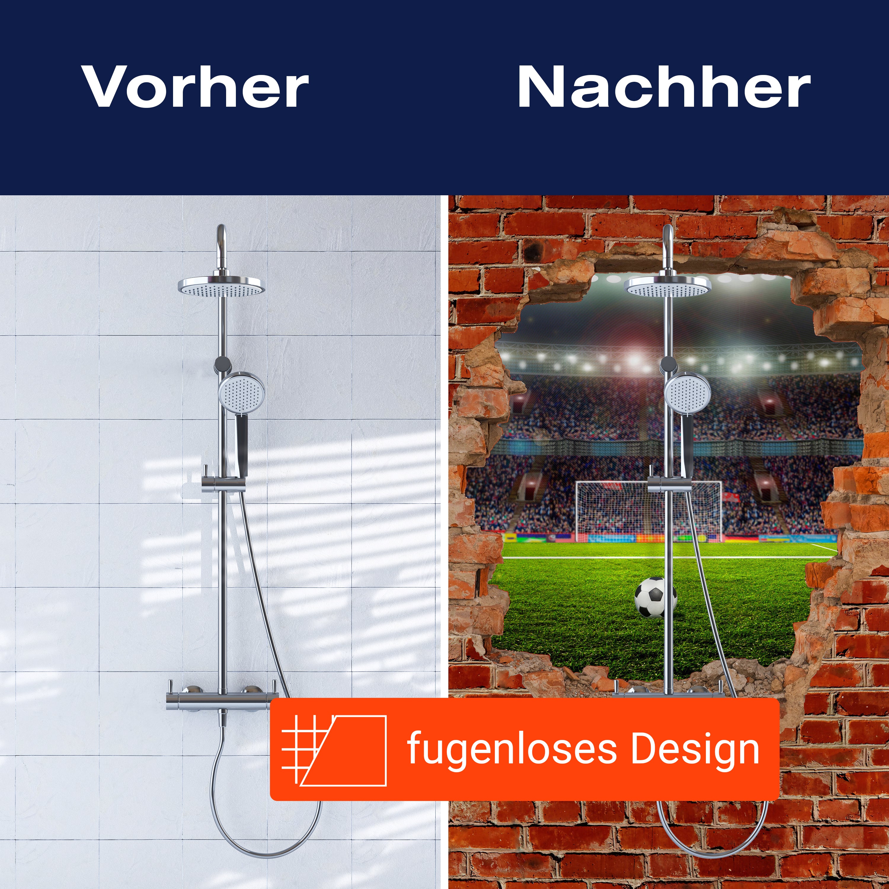 Bist du es leid, auf die langweiligen, schwer zu reinigende Fliesen in deiner Dusche zu schauen? Stell dir vor, wie dein Bad mit einer stilvollen, modernen Rückwand zum Leben erwacht! Unsere Duschwand 'Fußballfeld - Roter Backstein' ist nicht nur ein optisches Highlight, sondern auch praktisch und pflegeleicht.