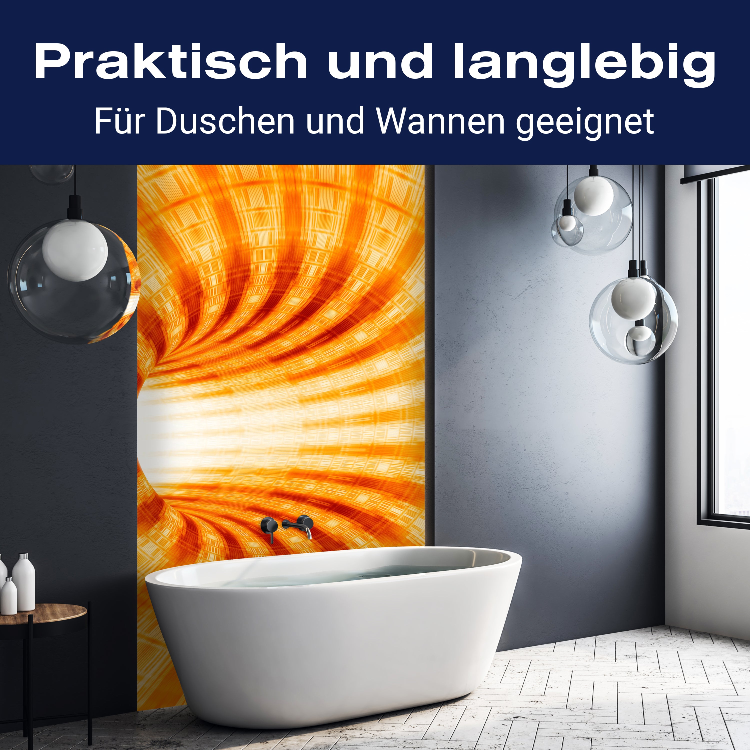 Bist du es leid, auf die langweiligen, schwer zu reinigende Fliesen in deiner Dusche zu schauen? Stell dir vor, wie dein Bad mit einer stilvollen, modernen Rückwand zum Leben erwacht! Unsere Duschwand 'Gelber Tunnel' ist nicht nur ein optisches Highlight, sondern auch praktisch und pflegeleicht.