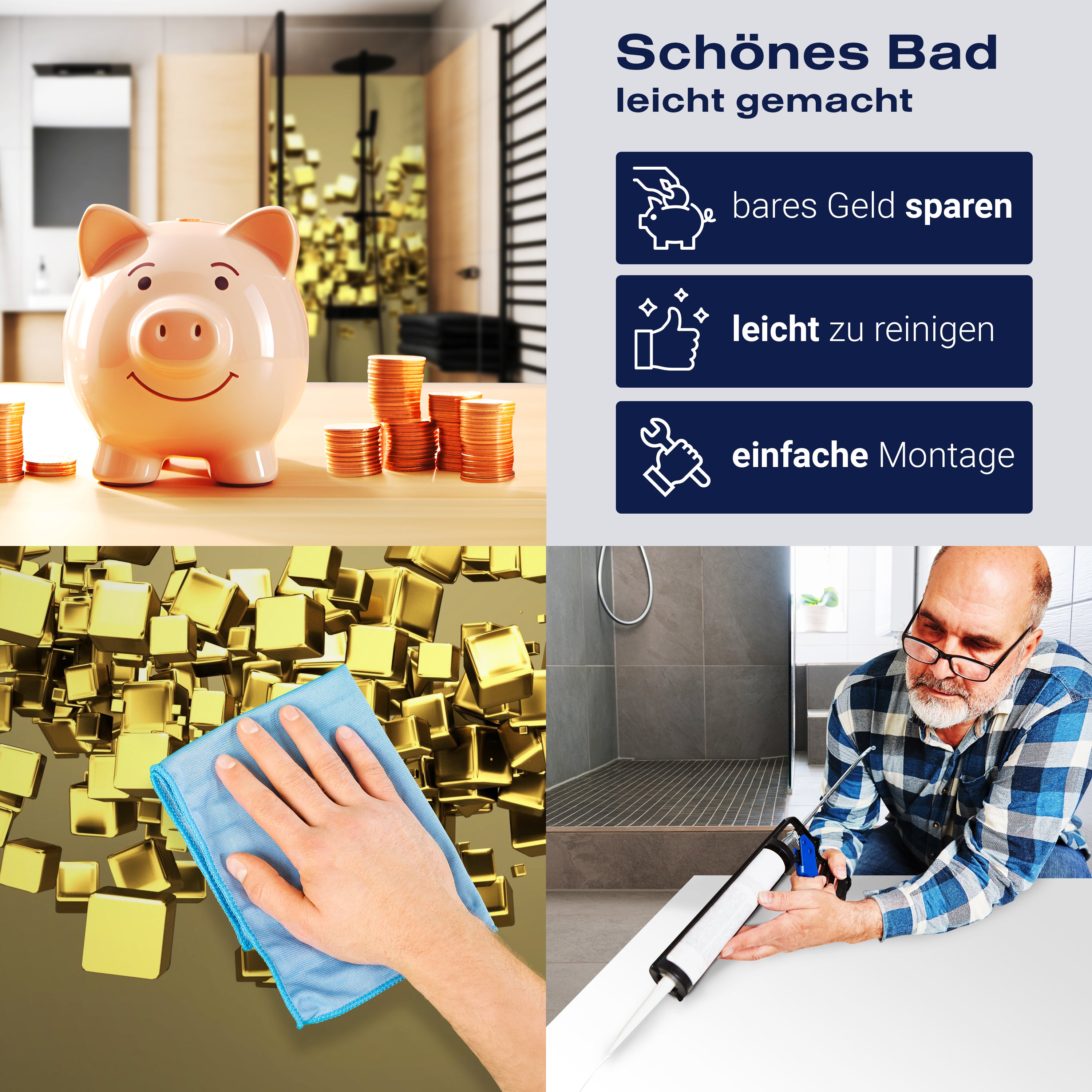 ür eine optimale Langlebigkeit ist es wichtig, die Duschrückwände richtig zu pflegen. Sie sollten regelmäßig mit einem weichen Tuch und milden Reinigungsmitteln gereinigt werden, um Kalk- und Seifenrückstände zu entfernen. Scheuermittel oder aggressive Chemikalien sollten vermieden werden, da diese die Oberfläche beschädigen können. Die fugenlose Oberfläche vereinfacht die Reinigung erheblich und trägt dazu bei, dass die Wandverkleidung hygienisch und ansprechend bleibt