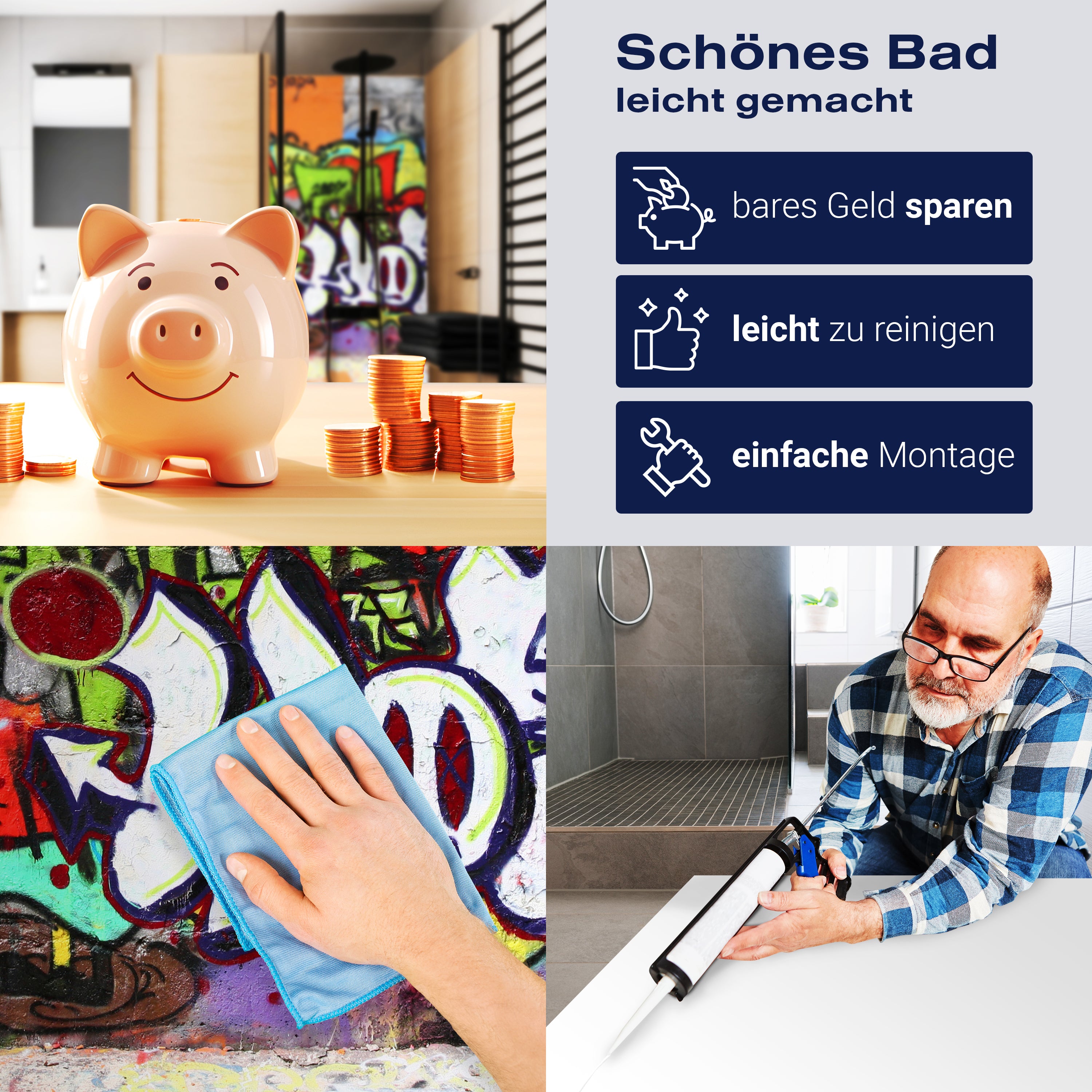 Diese Materialien bieten im Vergleich zu traditionellen Fliesen mehrere Vorteile. Sie haben eine fugenlose Oberfläche, was bedeutet, dass sie weniger anfällig für Schimmelbildung und leichter zu reinigen sind, da sich Schmutz und Kalk nicht in Fugen festsetzen können. Darüber hinaus ermöglichen sie eine schnelle und einfache Renovierung, da sie direkt über bestehenden Fliesen montiert werden können, was Zeit und Kosten spart