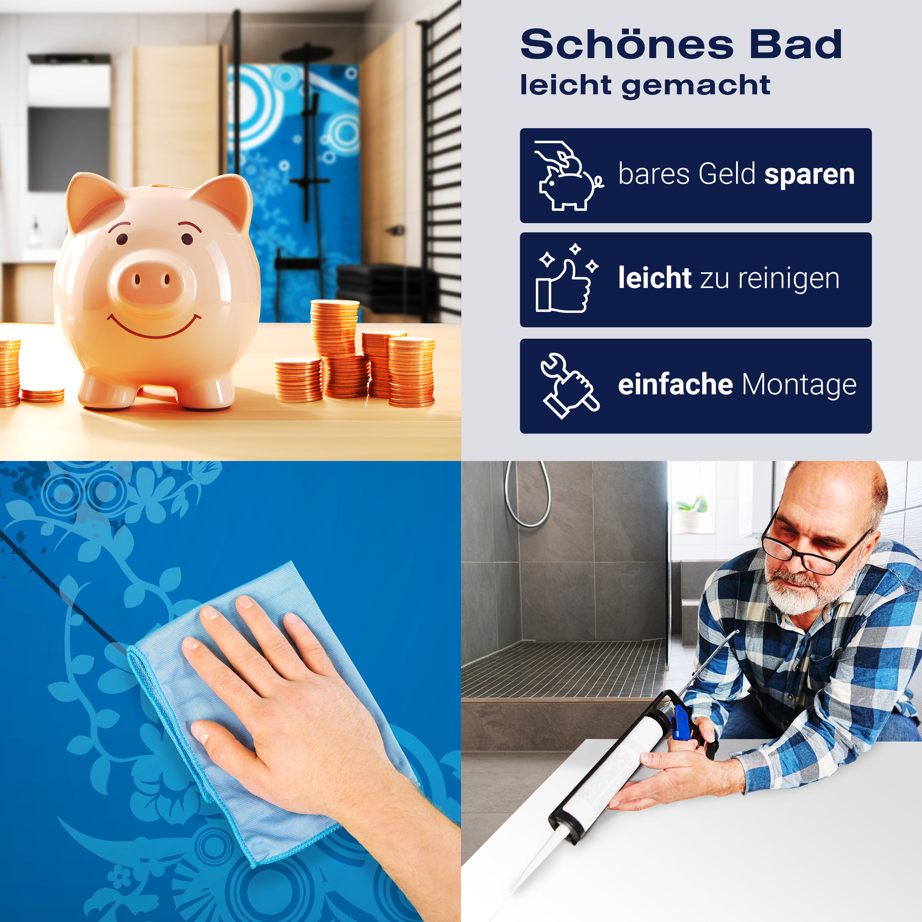 Bist du es leid, auf die langweiligen, schwer zu reinigende Fliesen in deiner Dusche zu schauen? Stell dir vor, wie dein Bad mit einer stilvollen, modernen Rückwand zum Leben erwacht! Unsere Duschwand 'Isolde Floral' ist nicht nur ein optisches Highlight, sondern auch praktisch und pflegeleicht.