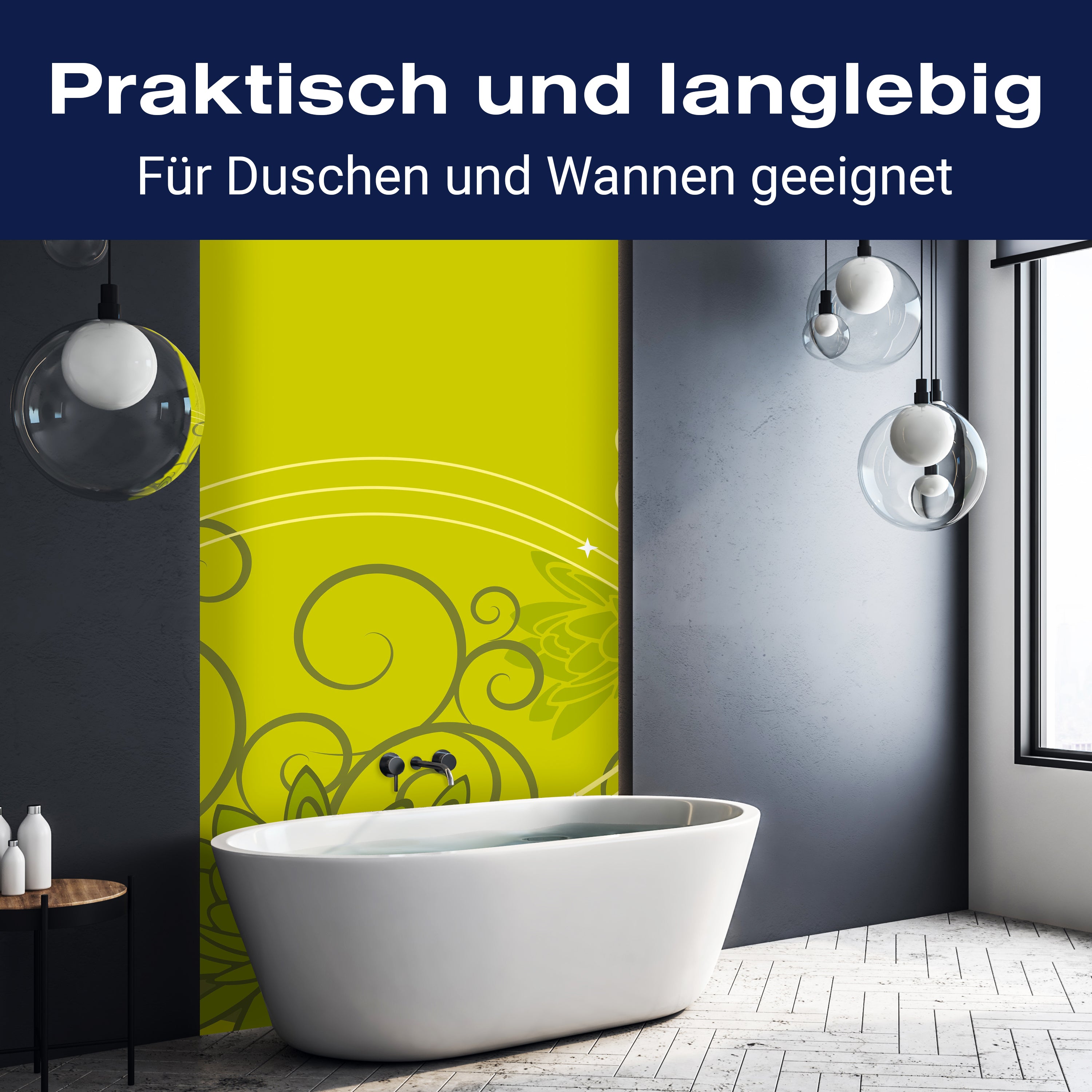 Vergiss die Tage, an denen Spritzer und Flecken deine Dusche ruiniert haben. Mit der Duschrückwand 'Jana Floral Blüten' gehören solche Sorgen der Vergangenheit an. Das hochwertige Material sorgt dafür, dass deine Dusche gegen Wasser und andere alltägliche Missgeschicke resistent ist. Ein einfacher Wisch, und sie sieht aus wie neu – ohne den Einsatz von aggressiven Reinigungsmitteln.