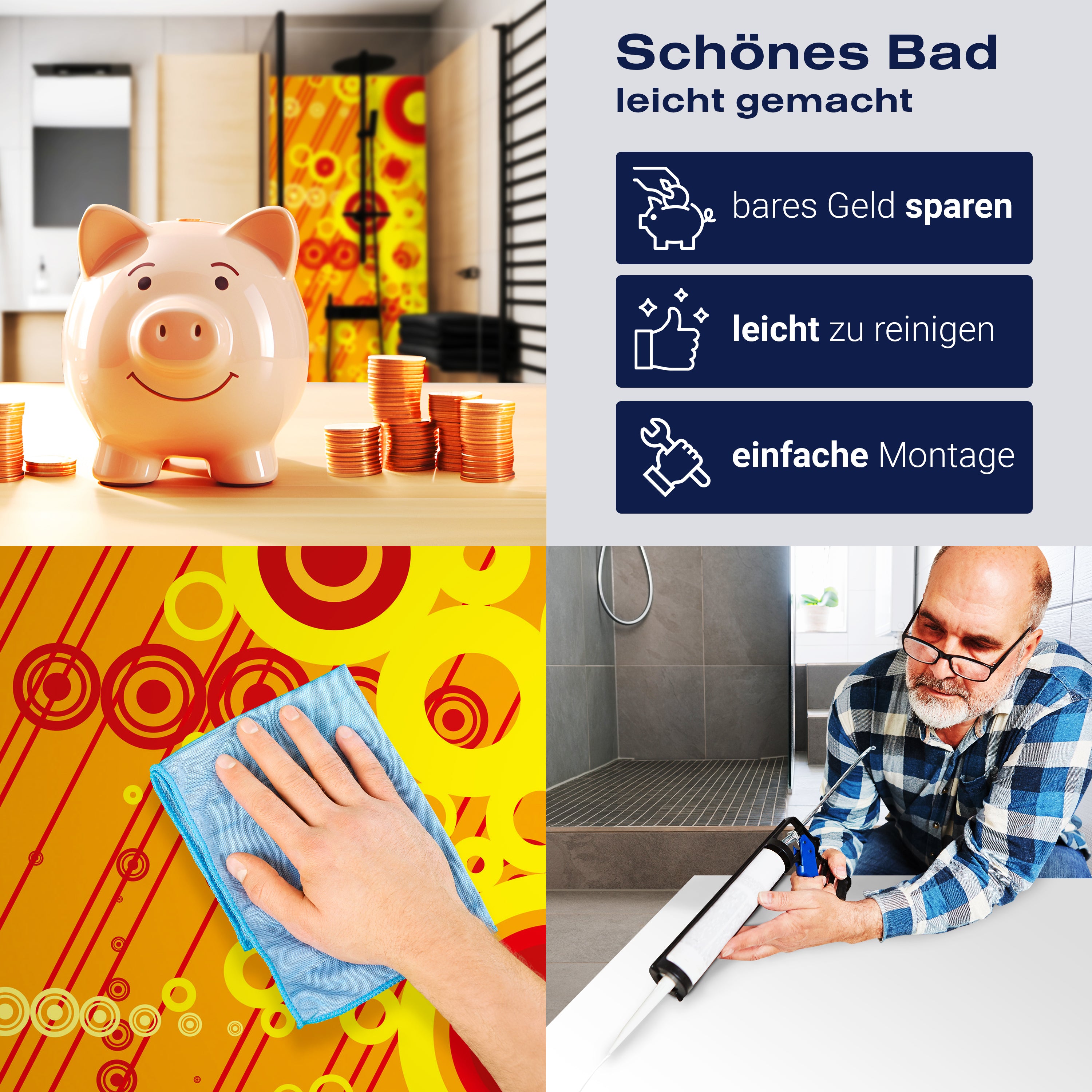 Diese Materialien bieten im Vergleich zu traditionellen Fliesen mehrere Vorteile. Sie haben eine fugenlose Oberfläche, was bedeutet, dass sie weniger anfällig für Schimmelbildung und leichter zu reinigen sind, da sich Schmutz und Kalk nicht in Fugen festsetzen können. Darüber hinaus ermöglichen sie eine schnelle und einfache Renovierung, da sie direkt über bestehenden Fliesen montiert werden können, was Zeit und Kosten spart