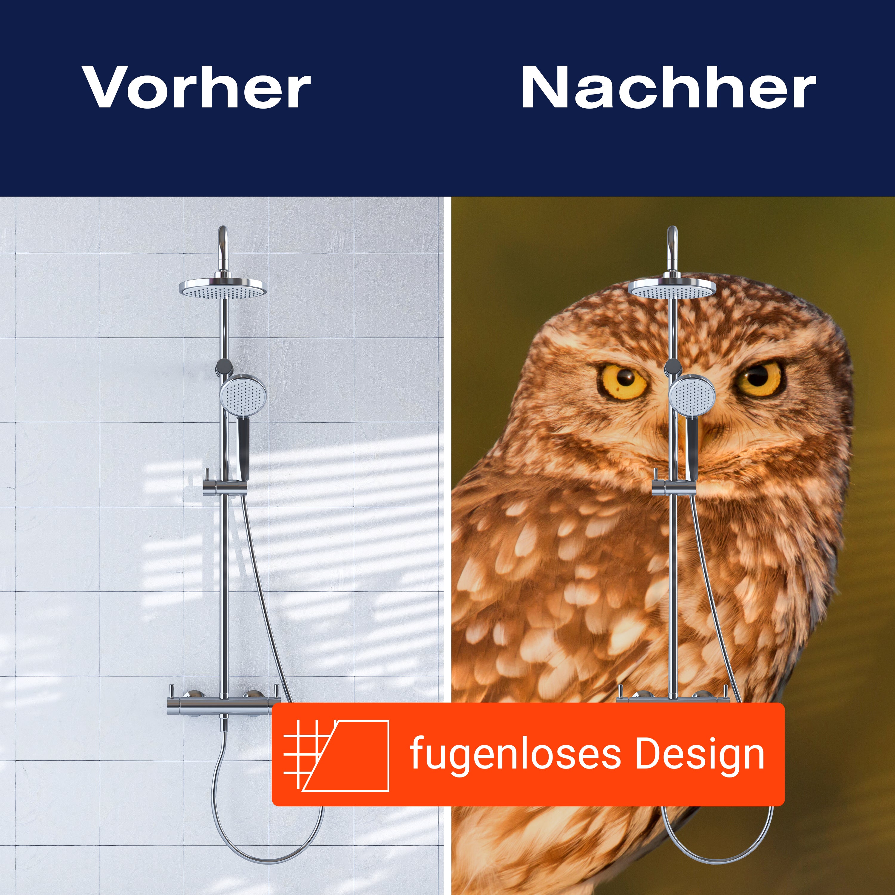 Bist du es leid, auf die langweiligen, schwer zu reinigende Fliesen in deiner Dusche zu schauen? Stell dir vor, wie dein Bad mit einer stilvollen, modernen Rückwand zum Leben erwacht! Unsere Duschwand 'Kleine Eule, Baumstamm' ist nicht nur ein optisches Highlight, sondern auch praktisch und pflegeleicht.