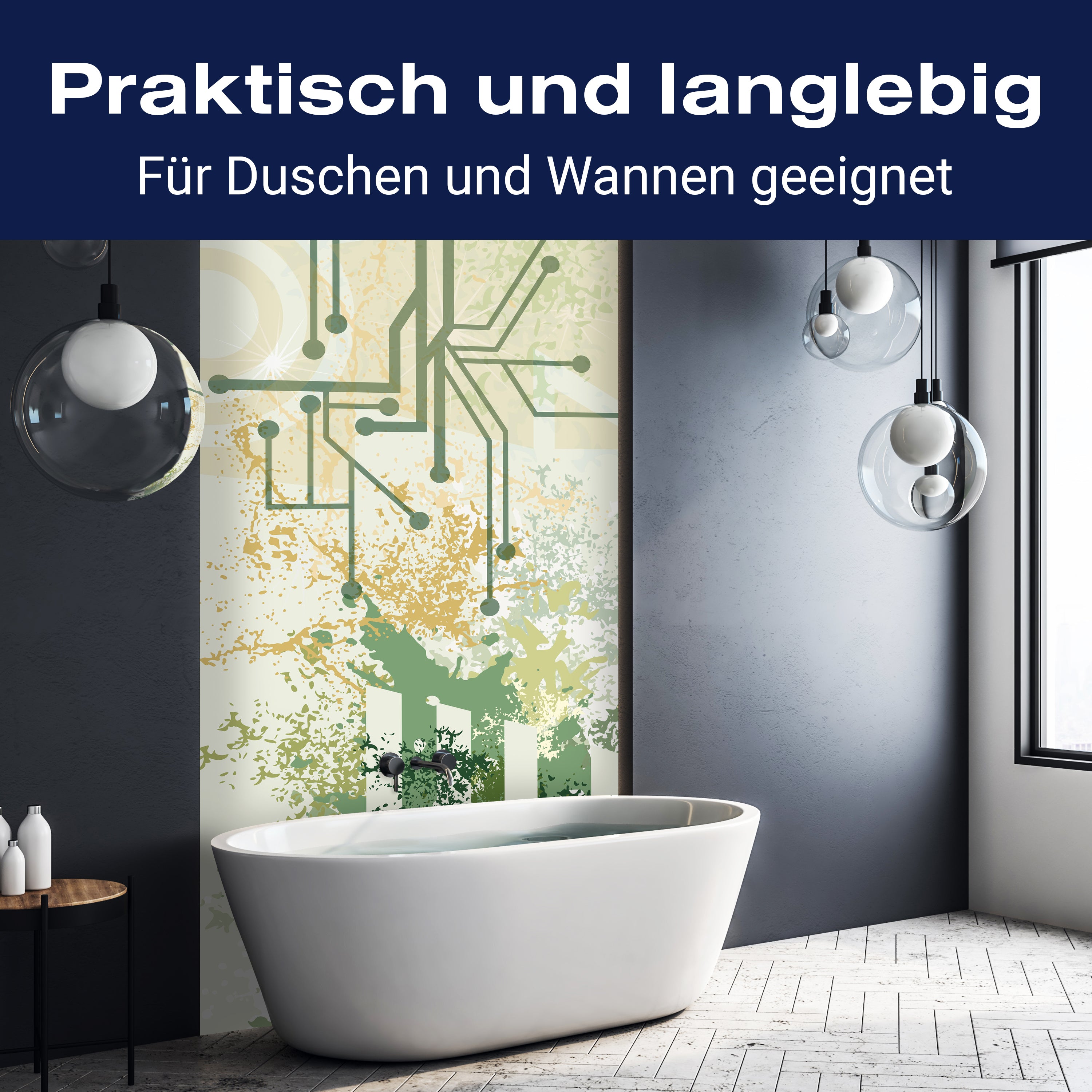 Vergiss die Tage, an denen Spritzer und Flecken deine Dusche ruiniert haben. Mit der Duschrückwand 'Lukas Technik' gehören solche Sorgen der Vergangenheit an. Das hochwertige Material sorgt dafür, dass deine Dusche gegen Wasser und andere alltägliche Missgeschicke resistent ist. Ein einfacher Wisch, und sie sieht aus wie neu – ohne den Einsatz von aggressiven Reinigungsmitteln.