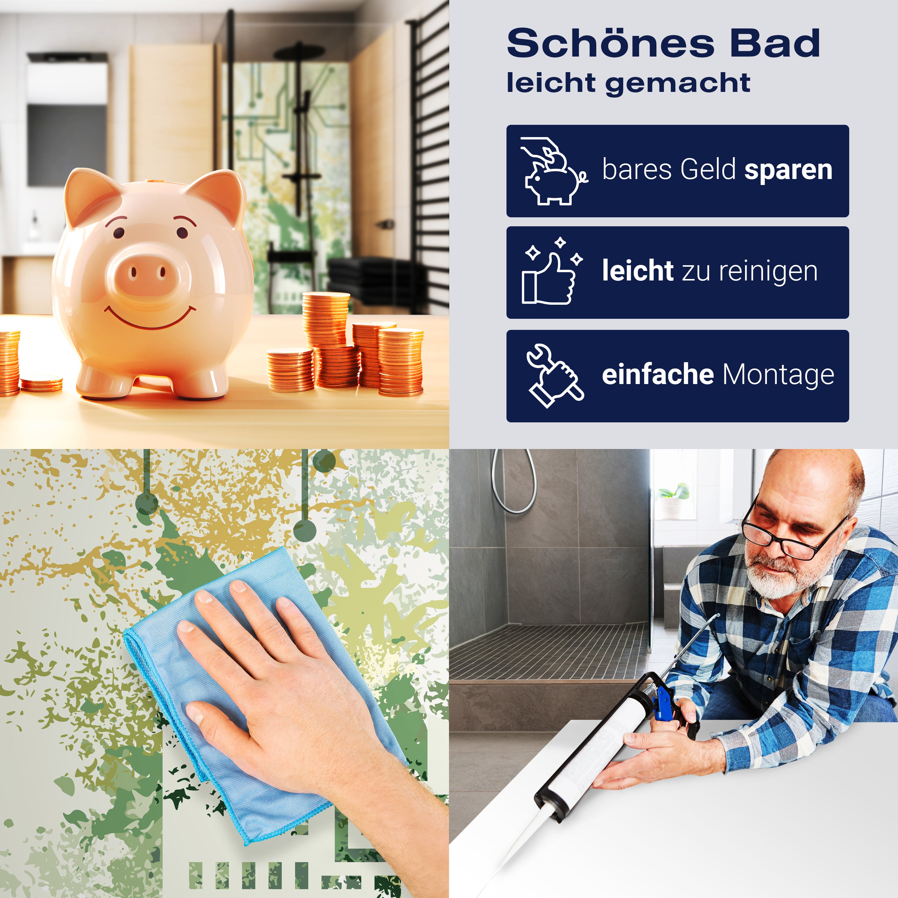Diese Materialien bieten im Vergleich zu traditionellen Fliesen mehrere Vorteile. Sie haben eine fugenlose Oberfläche, was bedeutet, dass sie weniger anfällig für Schimmelbildung und leichter zu reinigen sind, da sich Schmutz und Kalk nicht in Fugen festsetzen können. Darüber hinaus ermöglichen sie eine schnelle und einfache Renovierung, da sie direkt über bestehenden Fliesen montiert werden können, was Zeit und Kosten spart