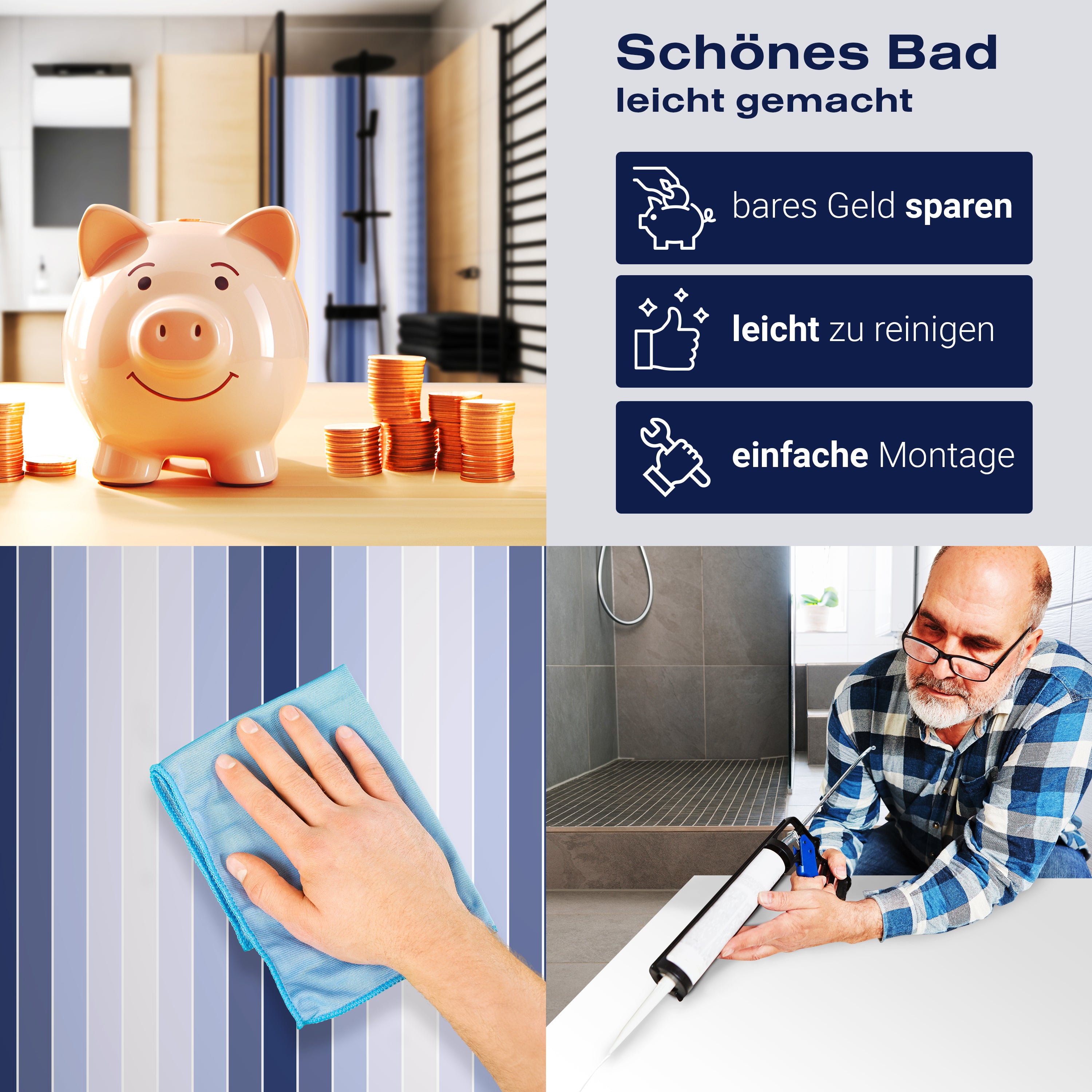 Diese Materialien bieten im Vergleich zu traditionellen Fliesen mehrere Vorteile. Sie haben eine fugenlose Oberfläche, was bedeutet, dass sie weniger anfällig für Schimmelbildung und leichter zu reinigen sind, da sich Schmutz und Kalk nicht in Fugen festsetzen können. Darüber hinaus ermöglichen sie eine schnelle und einfache Renovierung, da sie direkt über bestehenden Fliesen montiert werden können, was Zeit und Kosten spart
