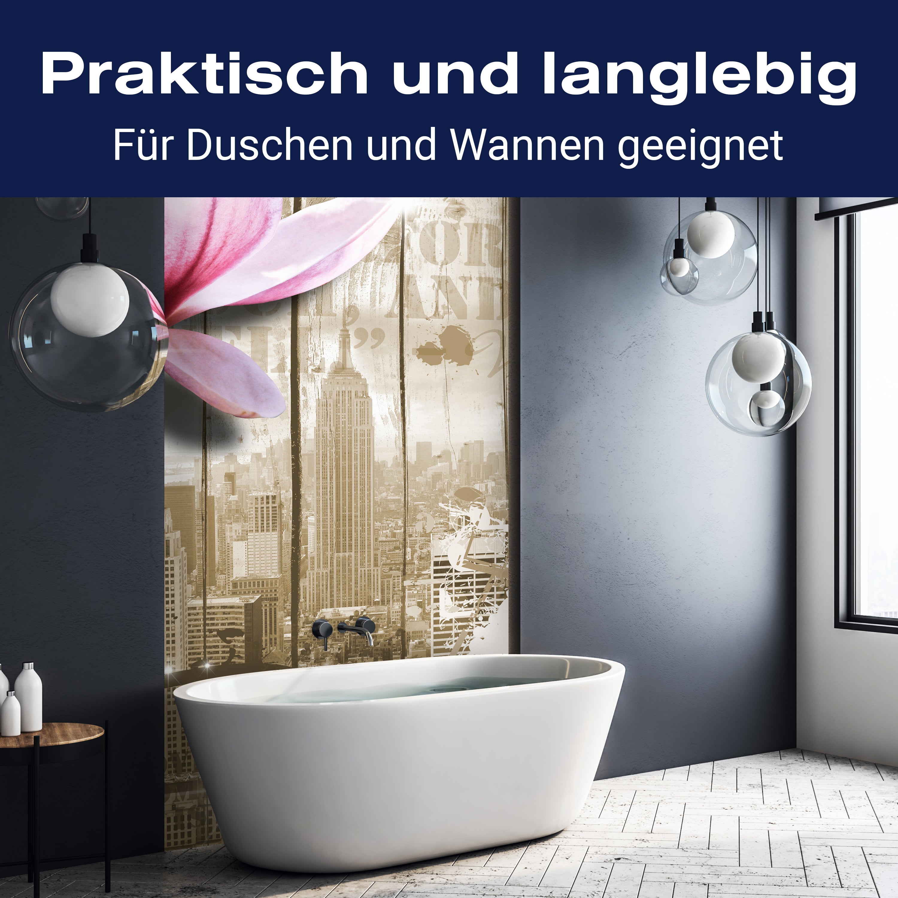 Bist du es leid, auf die langweiligen, schwer zu reinigende Fliesen in deiner Dusche zu schauen? Stell dir vor, wie dein Bad mit einer stilvollen, modernen Rückwand zum Leben erwacht! Unsere Duschwand 'Musik Vintage Blüten New York' ist nicht nur ein optisches Highlight, sondern auch praktisch und pflegeleicht.