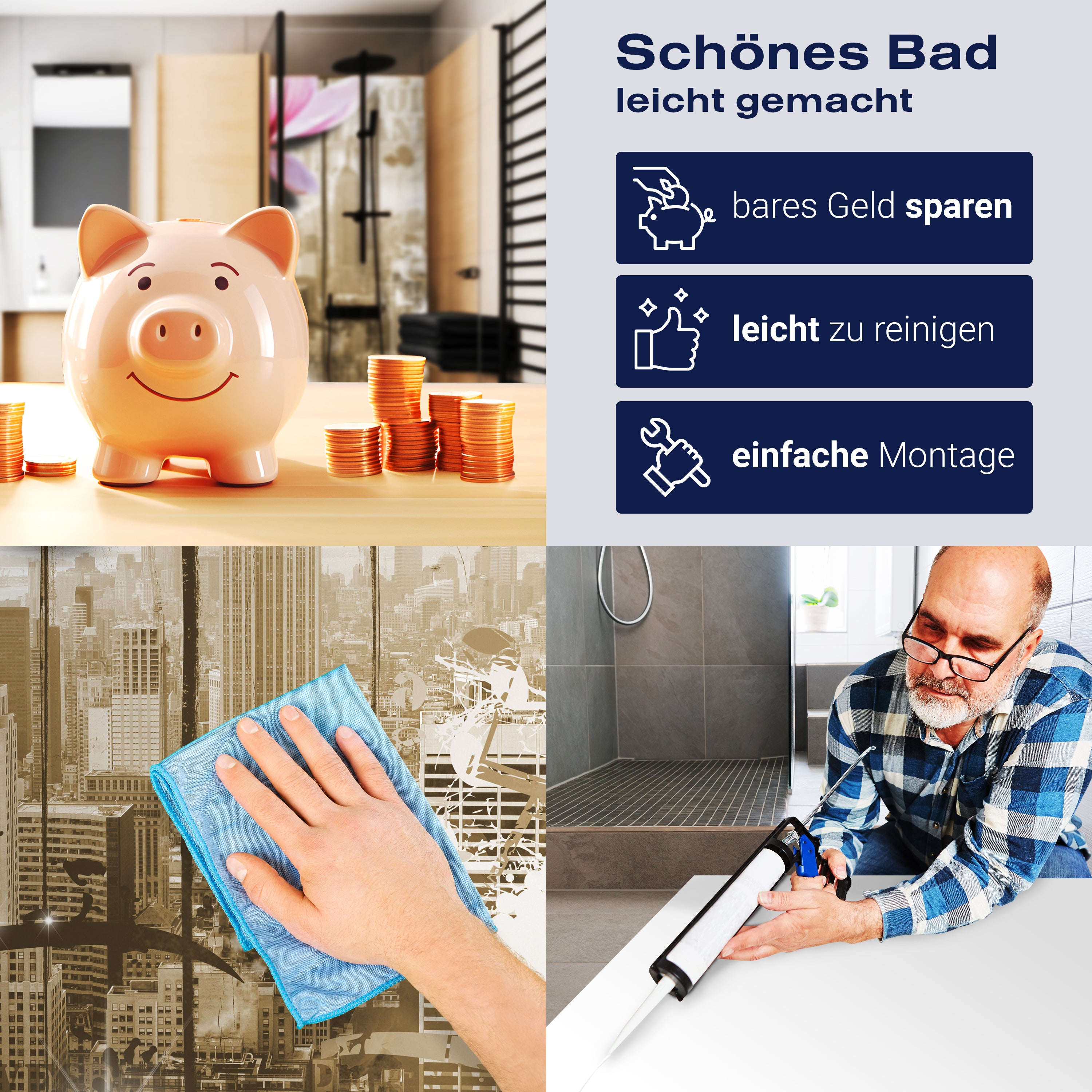 Diese Materialien bieten im Vergleich zu traditionellen Fliesen mehrere Vorteile. Sie haben eine fugenlose Oberfläche, was bedeutet, dass sie weniger anfällig für Schimmelbildung und leichter zu reinigen sind, da sich Schmutz und Kalk nicht in Fugen festsetzen können. Darüber hinaus ermöglichen sie eine schnelle und einfache Renovierung, da sie direkt über bestehenden Fliesen montiert werden können, was Zeit und Kosten spart