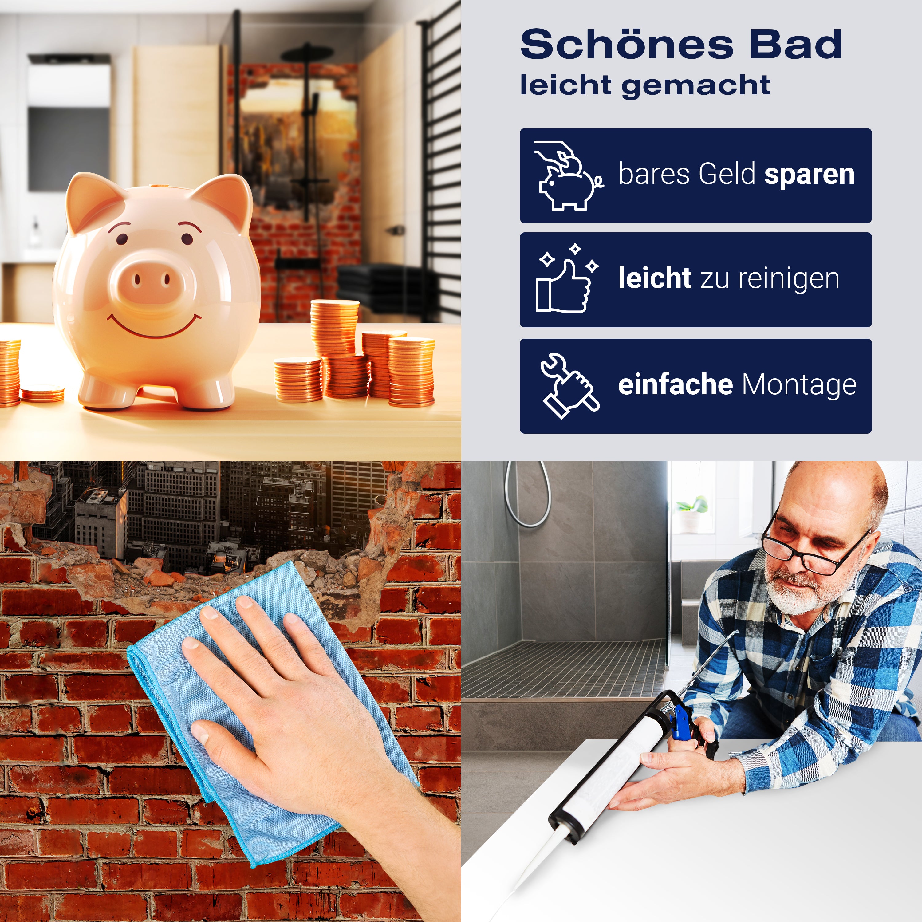 Diese Materialien bieten im Vergleich zu traditionellen Fliesen mehrere Vorteile. Sie haben eine fugenlose Oberfläche, was bedeutet, dass sie weniger anfällig für Schimmelbildung und leichter zu reinigen sind, da sich Schmutz und Kalk nicht in Fugen festsetzen können. Darüber hinaus ermöglichen sie eine schnelle und einfache Renovierung, da sie direkt über bestehenden Fliesen montiert werden können, was Zeit und Kosten spart