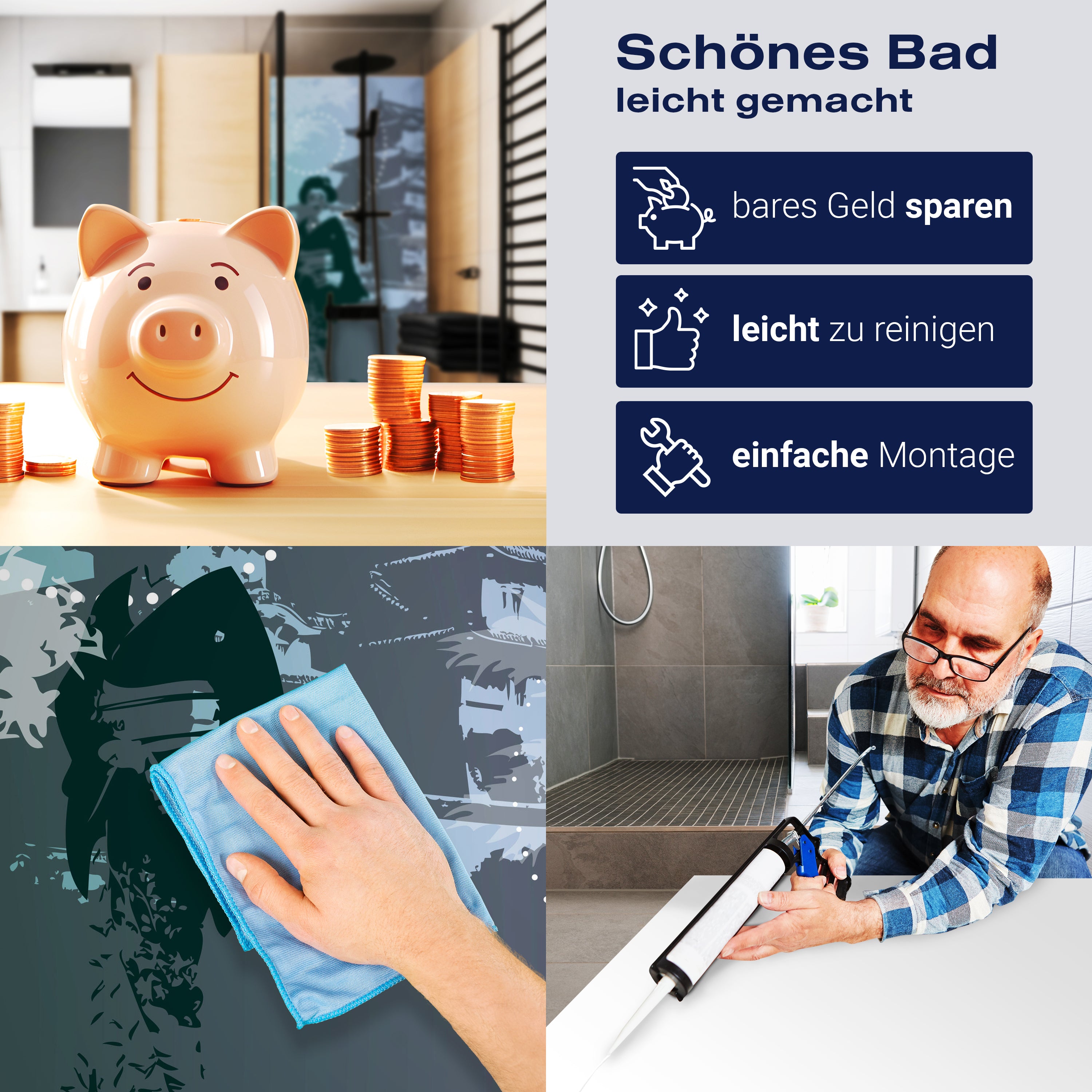 Diese Materialien bieten im Vergleich zu traditionellen Fliesen mehrere Vorteile. Sie haben eine fugenlose Oberfläche, was bedeutet, dass sie weniger anfällig für Schimmelbildung und leichter zu reinigen sind, da sich Schmutz und Kalk nicht in Fugen festsetzen können. Darüber hinaus ermöglichen sie eine schnelle und einfache Renovierung, da sie direkt über bestehenden Fliesen montiert werden können, was Zeit und Kosten spart