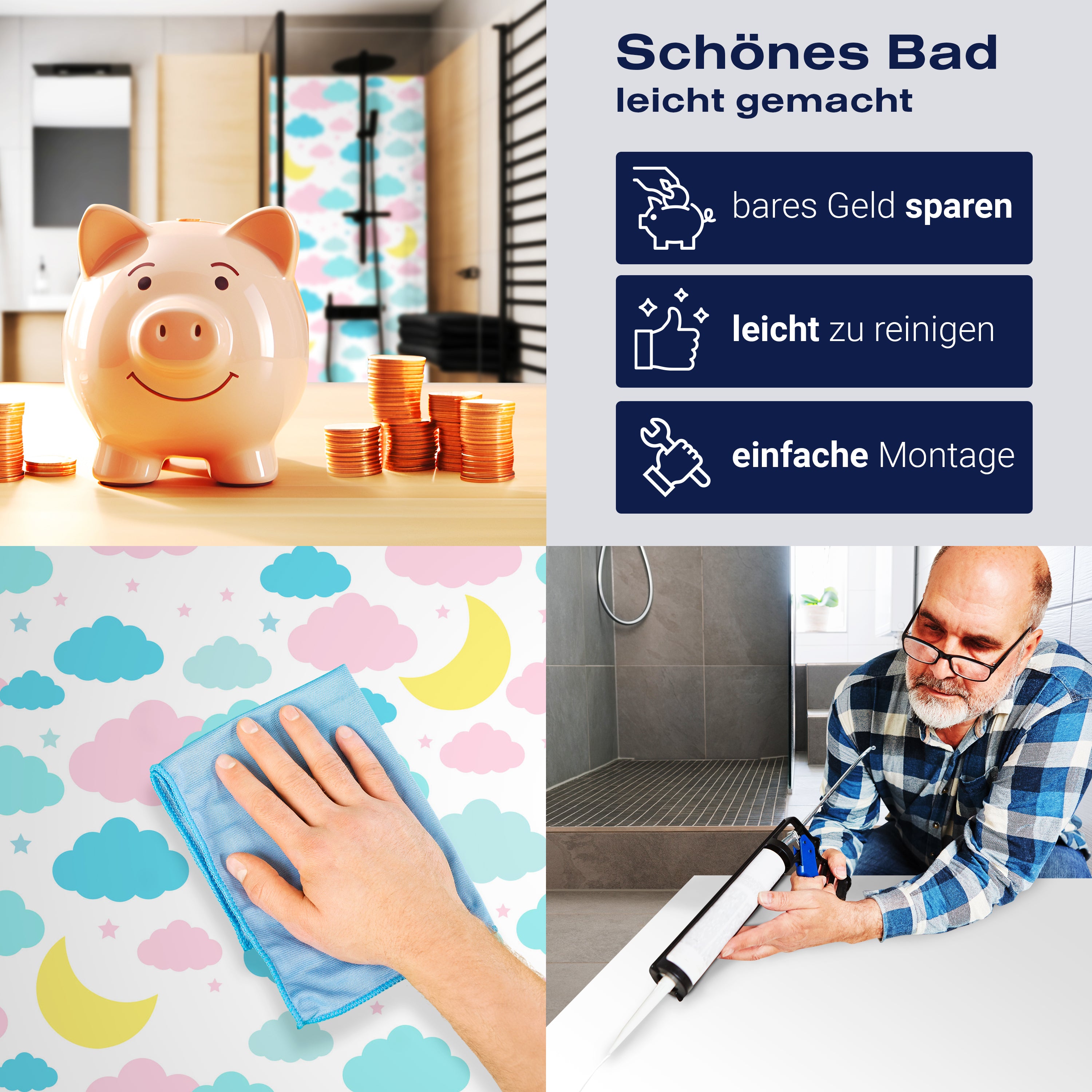 Diese Materialien bieten im Vergleich zu traditionellen Fliesen mehrere Vorteile. Sie haben eine fugenlose Oberfläche, was bedeutet, dass sie weniger anfällig für Schimmelbildung und leichter zu reinigen sind, da sich Schmutz und Kalk nicht in Fugen festsetzen können. Darüber hinaus ermöglichen sie eine schnelle und einfache Renovierung, da sie direkt über bestehenden Fliesen montiert werden können, was Zeit und Kosten spart