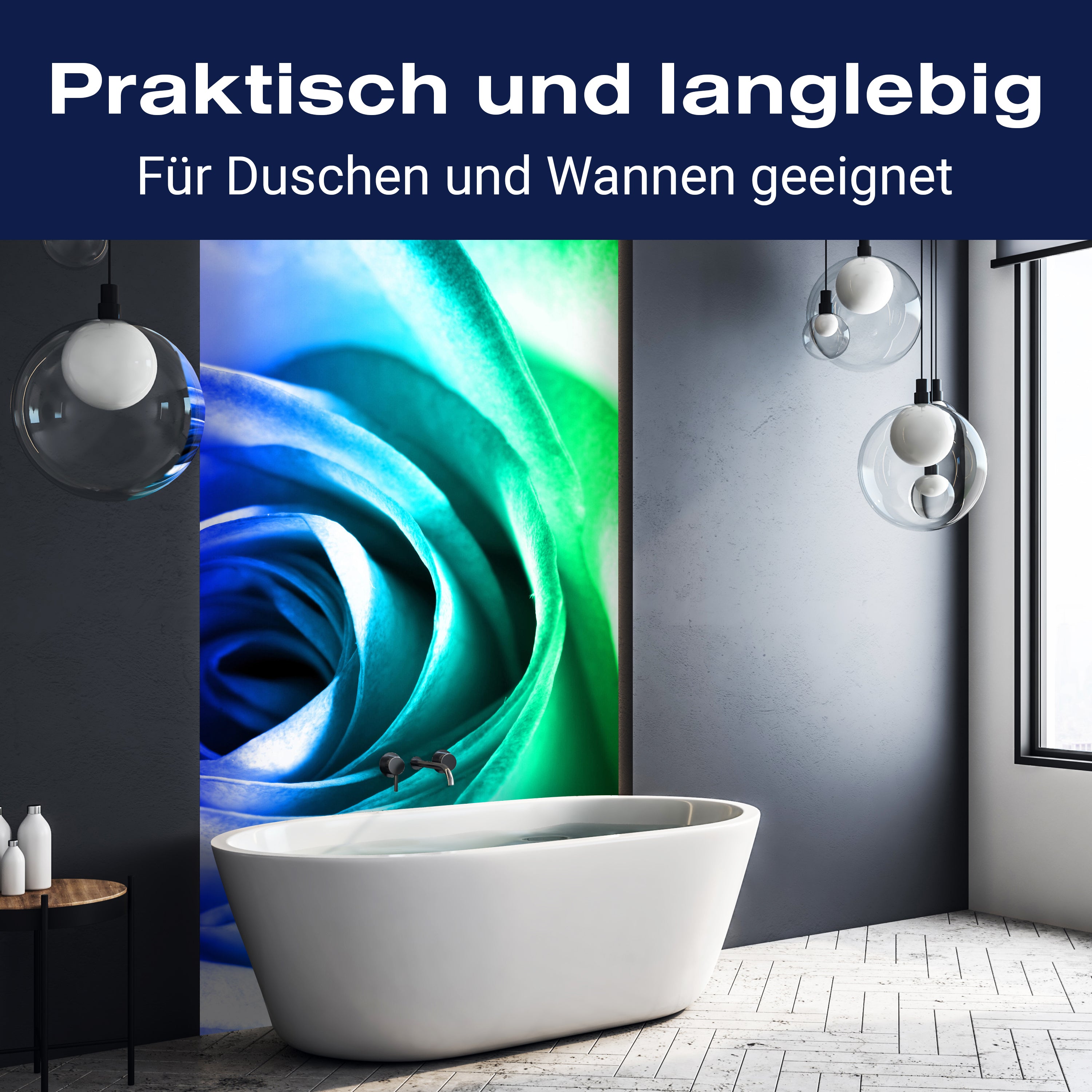 Bist du es leid, auf die langweiligen, schwer zu reinigende Fliesen in deiner Dusche zu schauen? Stell dir vor, wie dein Bad mit einer stilvollen, modernen Rückwand zum Leben erwacht! Unsere Duschwand 'Regenbogenrose Blüte' ist nicht nur ein optisches Highlight, sondern auch praktisch und pflegeleicht.