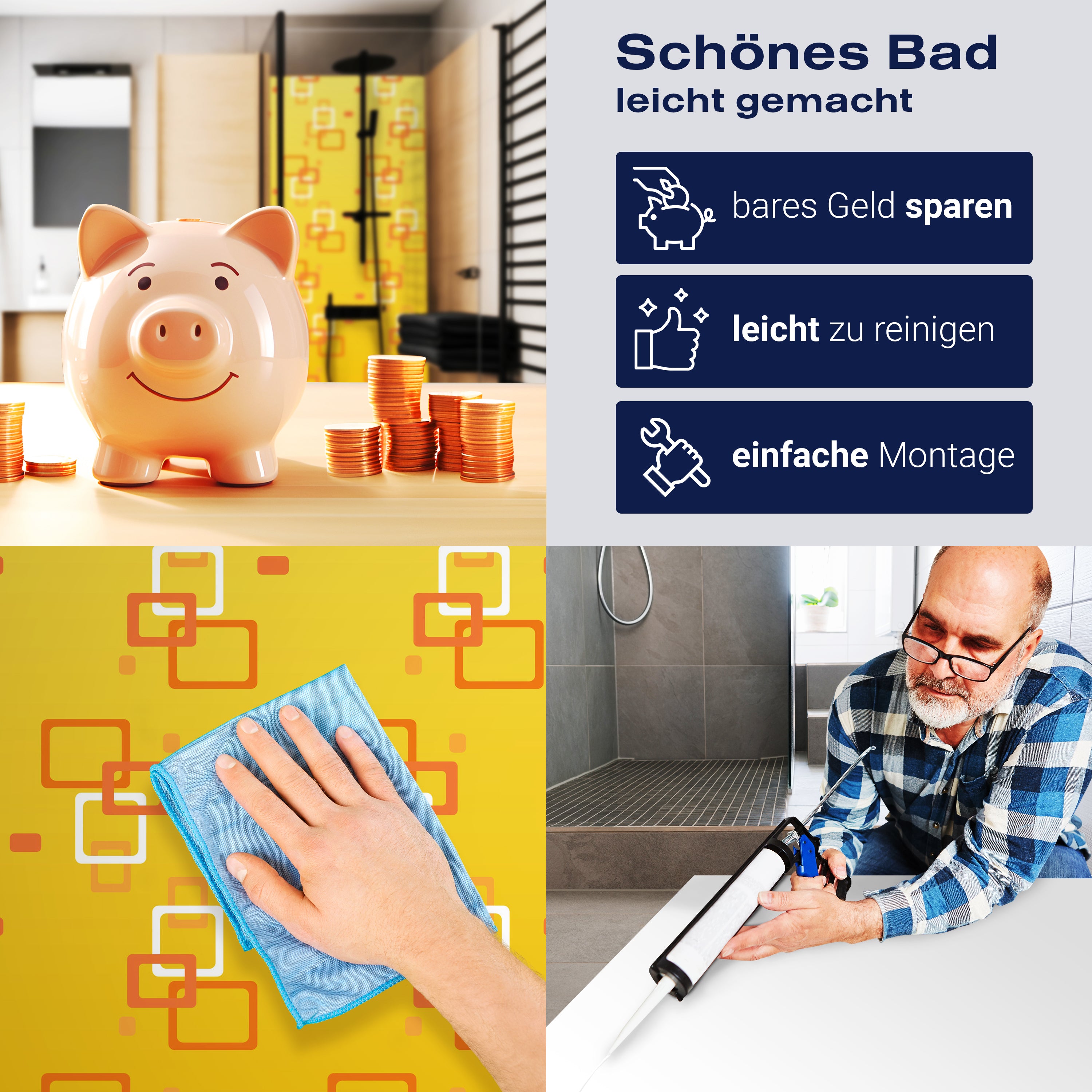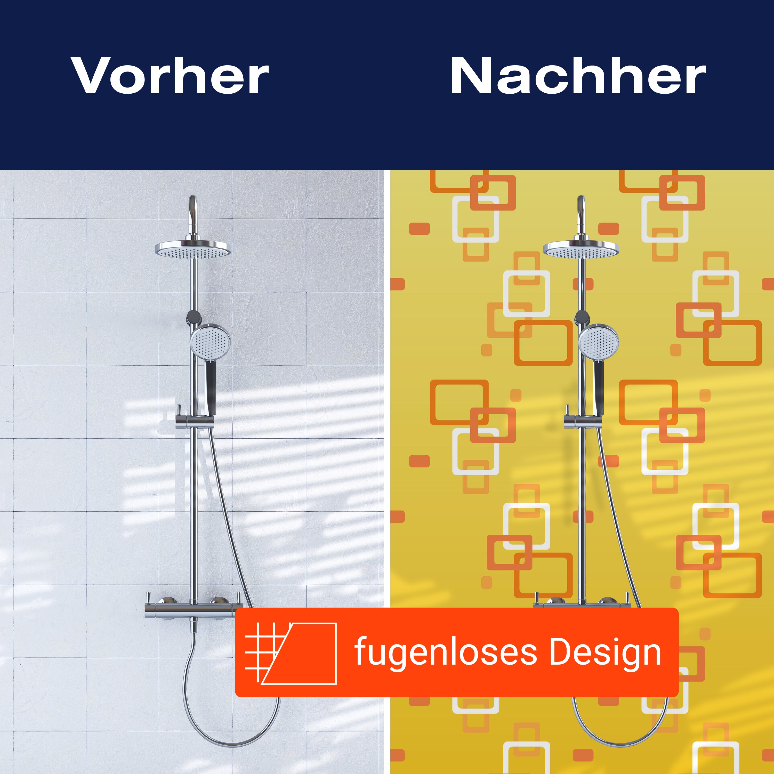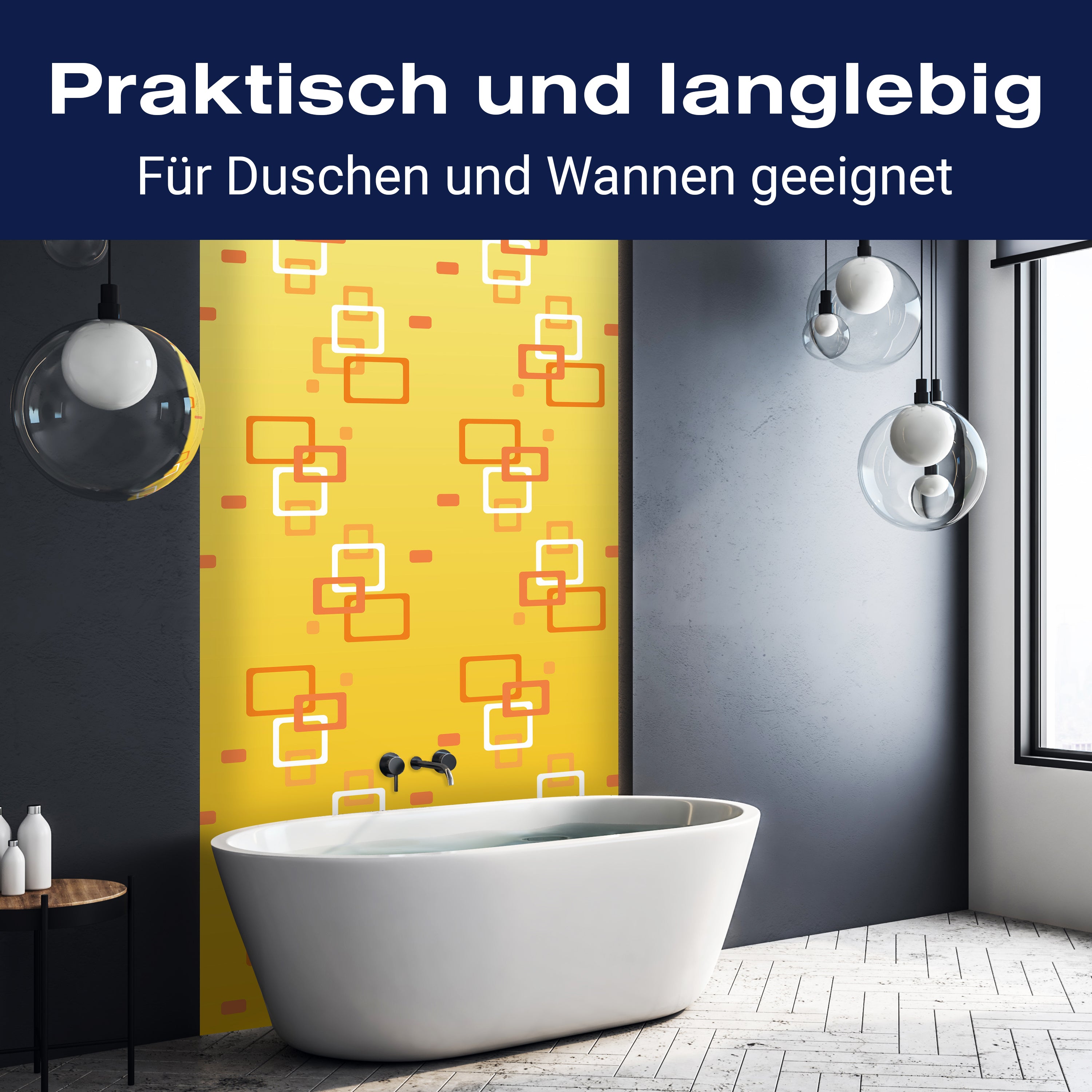 Bist du es leid, auf die langweiligen, schwer zu reinigende Fliesen in deiner Dusche zu schauen? Stell dir vor, wie dein Bad mit einer stilvollen, modernen Rückwand zum Leben erwacht! Unsere Duschwand 'Retrokästchen Gelb Muster' ist nicht nur ein optisches Highlight, sondern auch praktisch und pflegeleicht.