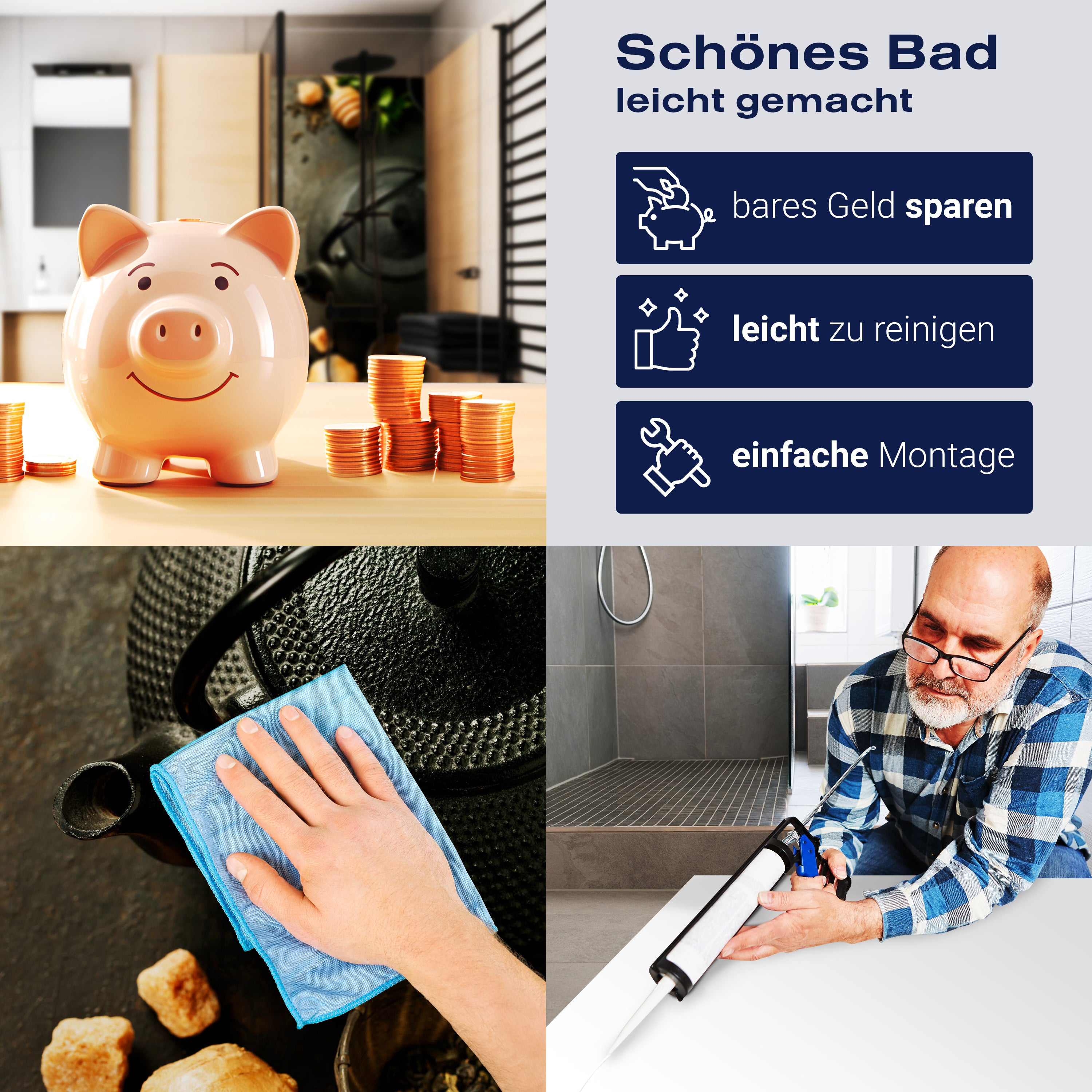 Diese Materialien bieten im Vergleich zu traditionellen Fliesen mehrere Vorteile. Sie haben eine fugenlose Oberfläche, was bedeutet, dass sie weniger anfällig für Schimmelbildung und leichter zu reinigen sind, da sich Schmutz und Kalk nicht in Fugen festsetzen können. Darüber hinaus ermöglichen sie eine schnelle und einfache Renovierung, da sie direkt über bestehenden Fliesen montiert werden können, was Zeit und Kosten spart