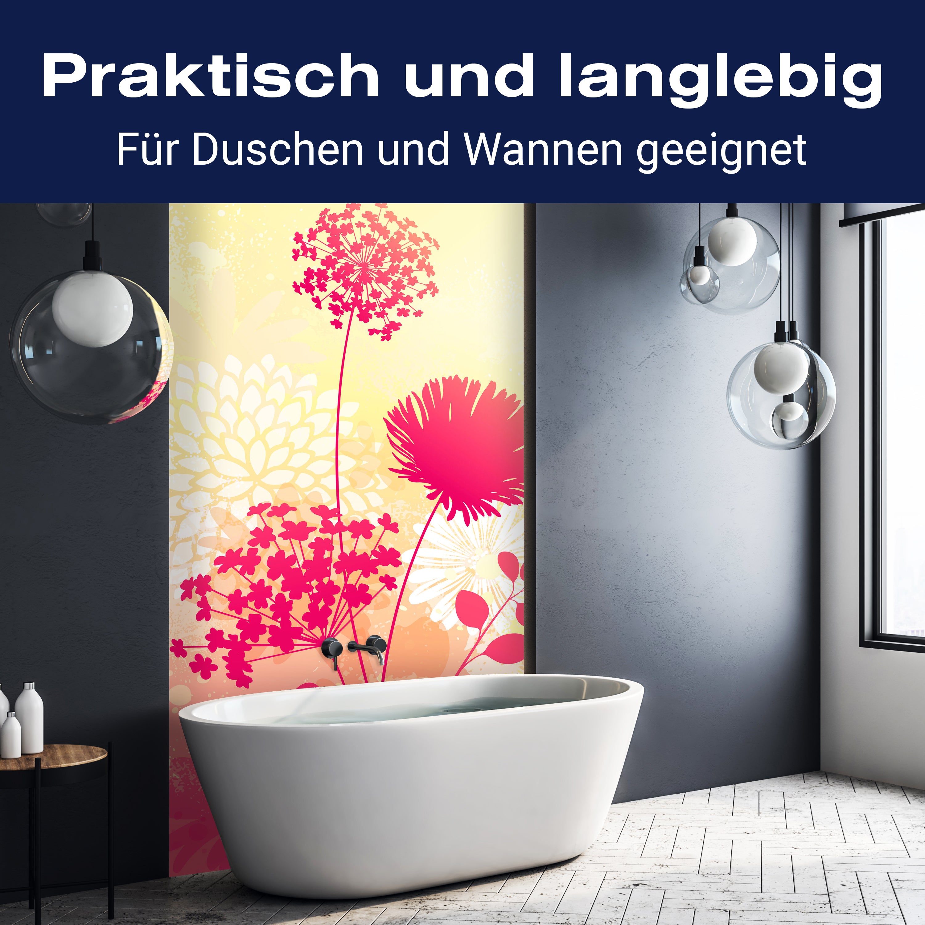 Bist du es leid, auf die langweiligen, schwer zu reinigende Fliesen in deiner Dusche zu schauen? Stell dir vor, wie dein Bad mit einer stilvollen, modernen Rückwand zum Leben erwacht! Unsere Duschwand 'Sommerwiese' ist nicht nur ein optisches Highlight, sondern auch praktisch und pflegeleicht.