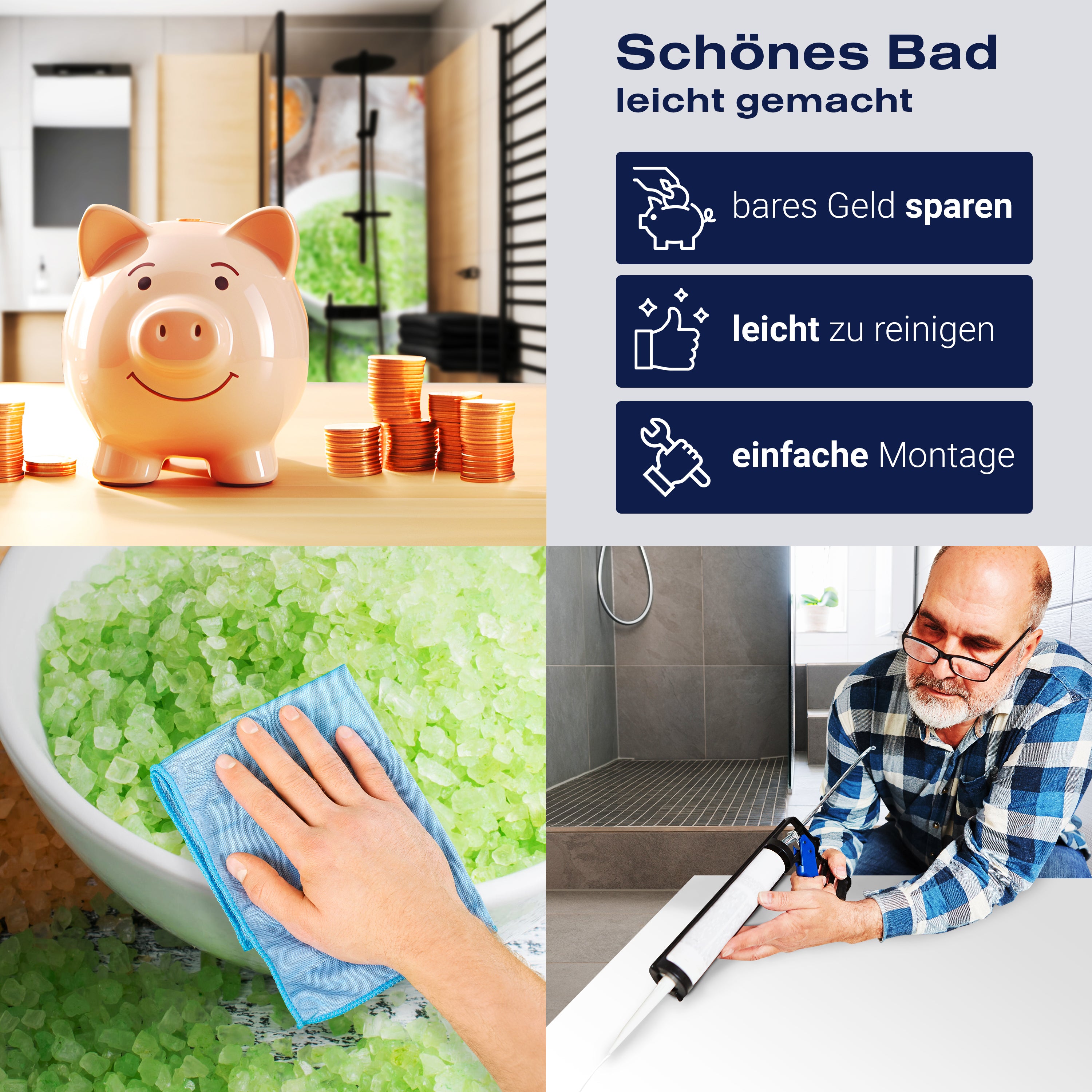 Diese Materialien bieten im Vergleich zu traditionellen Fliesen mehrere Vorteile. Sie haben eine fugenlose Oberfläche, was bedeutet, dass sie weniger anfällig für Schimmelbildung und leichter zu reinigen sind, da sich Schmutz und Kalk nicht in Fugen festsetzen können. Darüber hinaus ermöglichen sie eine schnelle und einfache Renovierung, da sie direkt über bestehenden Fliesen montiert werden können, was Zeit und Kosten spart
