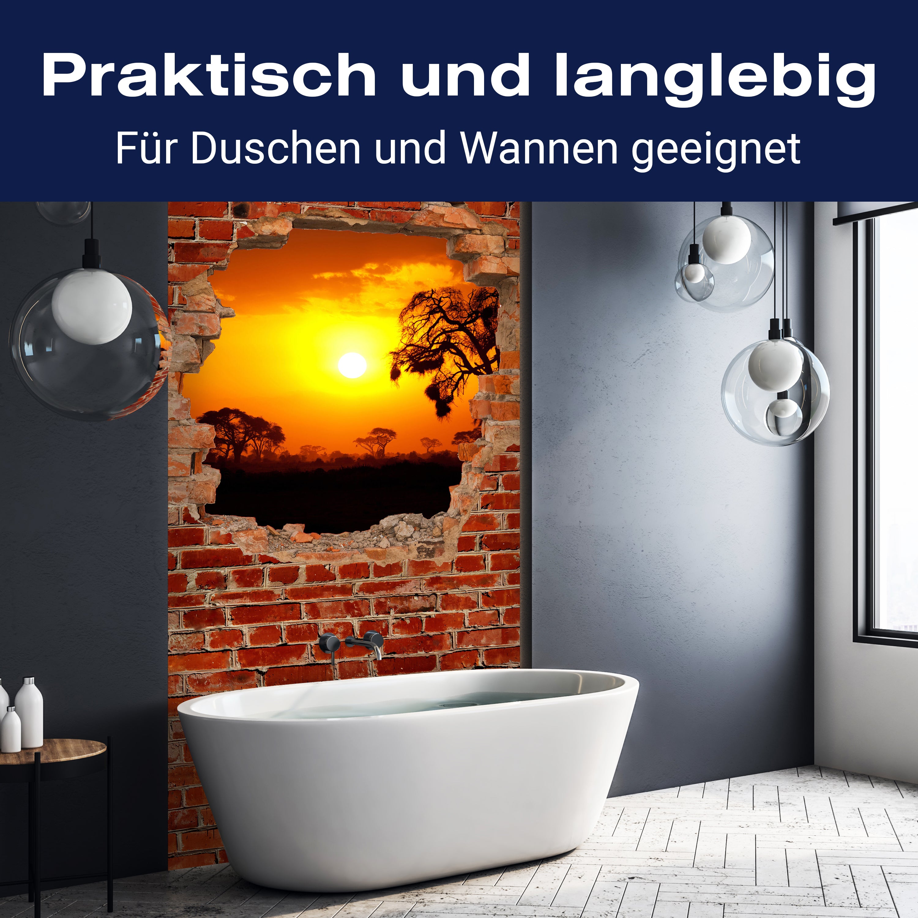 Vergiss die Tage, an denen Spritzer und Flecken deine Dusche ruiniert haben. Mit der Duschrückwand 'Steppe Sonnenuntergang - Roter Backstein' gehören solche Sorgen der Vergangenheit an. Das hochwertige Material sorgt dafür, dass deine Dusche gegen Wasser und andere alltägliche Missgeschicke resistent ist. Ein einfacher Wisch, und sie sieht aus wie neu – ohne den Einsatz von aggressiven Reinigungsmitteln.
