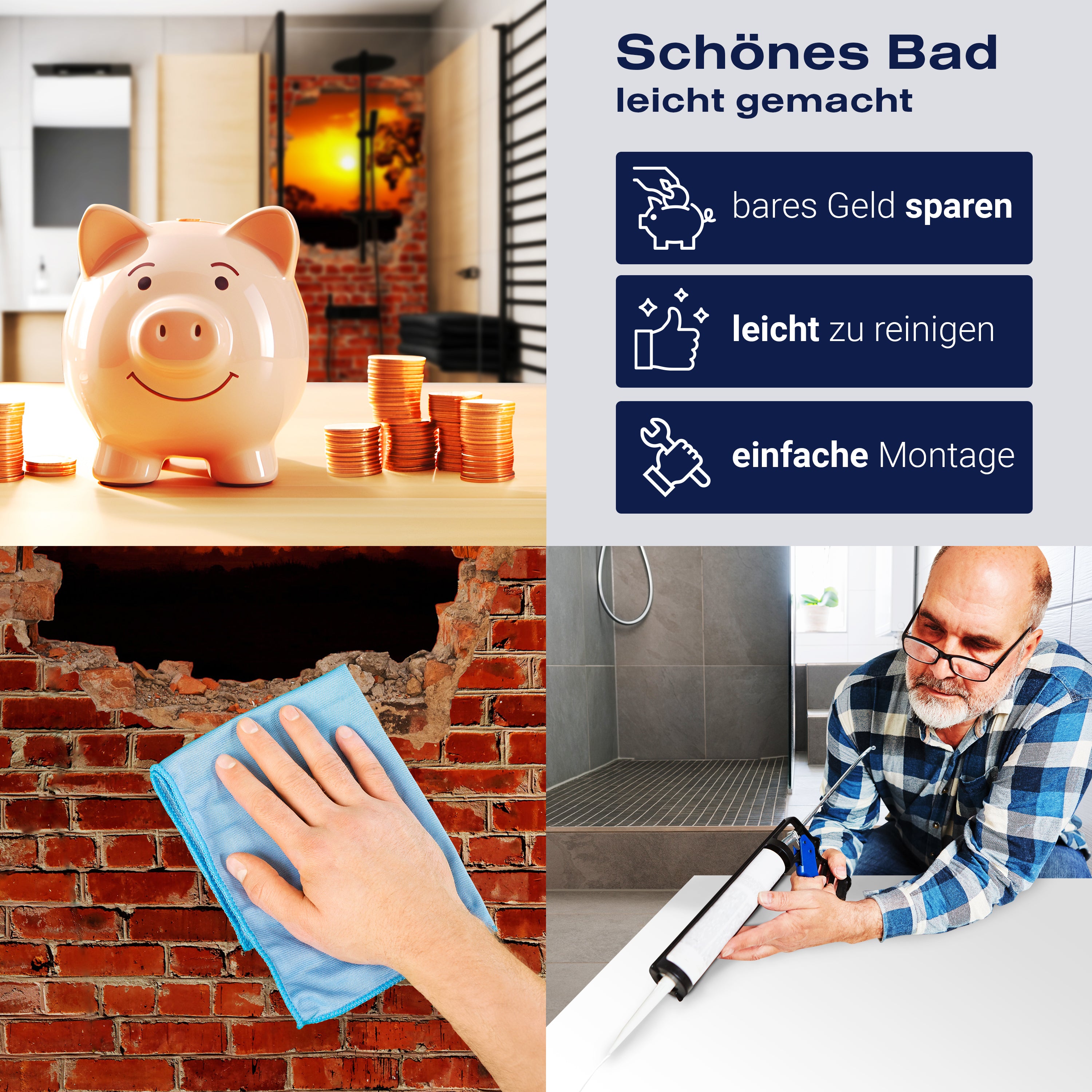 Diese Materialien bieten im Vergleich zu traditionellen Fliesen mehrere Vorteile. Sie haben eine fugenlose Oberfläche, was bedeutet, dass sie weniger anfällig für Schimmelbildung und leichter zu reinigen sind, da sich Schmutz und Kalk nicht in Fugen festsetzen können. Darüber hinaus ermöglichen sie eine schnelle und einfache Renovierung, da sie direkt über bestehenden Fliesen montiert werden können, was Zeit und Kosten spart