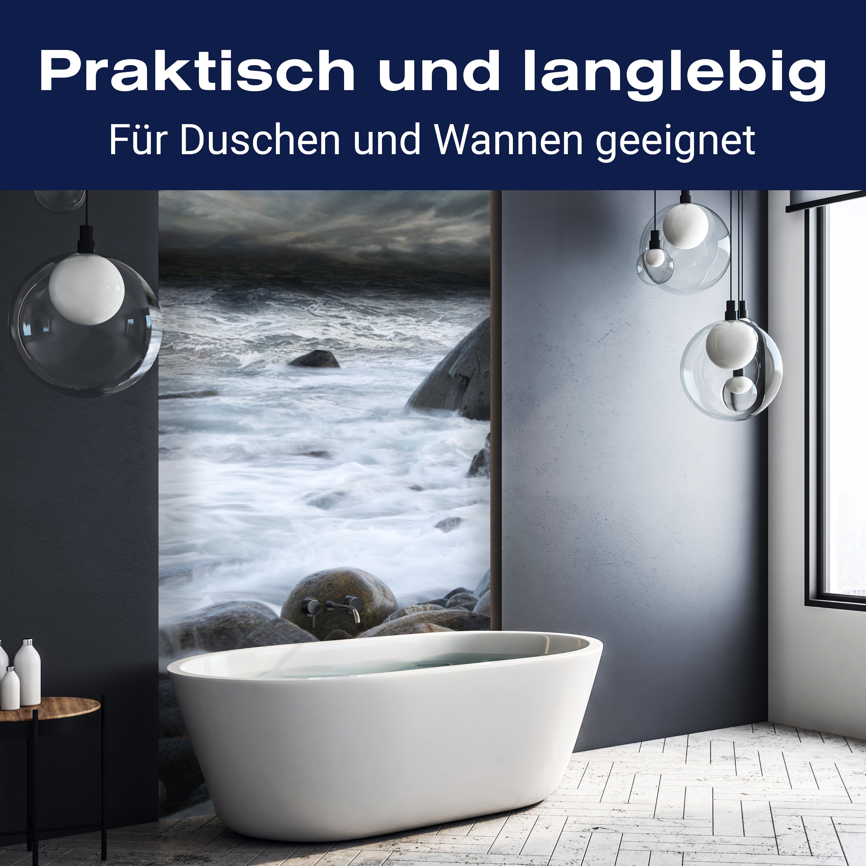 Erlebe die perfekte Symbiose aus Stil und Praktikabilität mit unserer hochwertigen Duschwand von Wandmotiv24. Gefertigt in Deutschland, steht dieses Produkt für eine fugenlose Sauberkeit, die dein Badezimmer in eine Oase der Ruhe und Entspannung verwandelt. Unsere Duschwände sind in verschiedenen Größen von 70 x 200 cm bis zu 100 x 200 cm verfügbar, um perfekt in dein Raumkonzept zu passen.