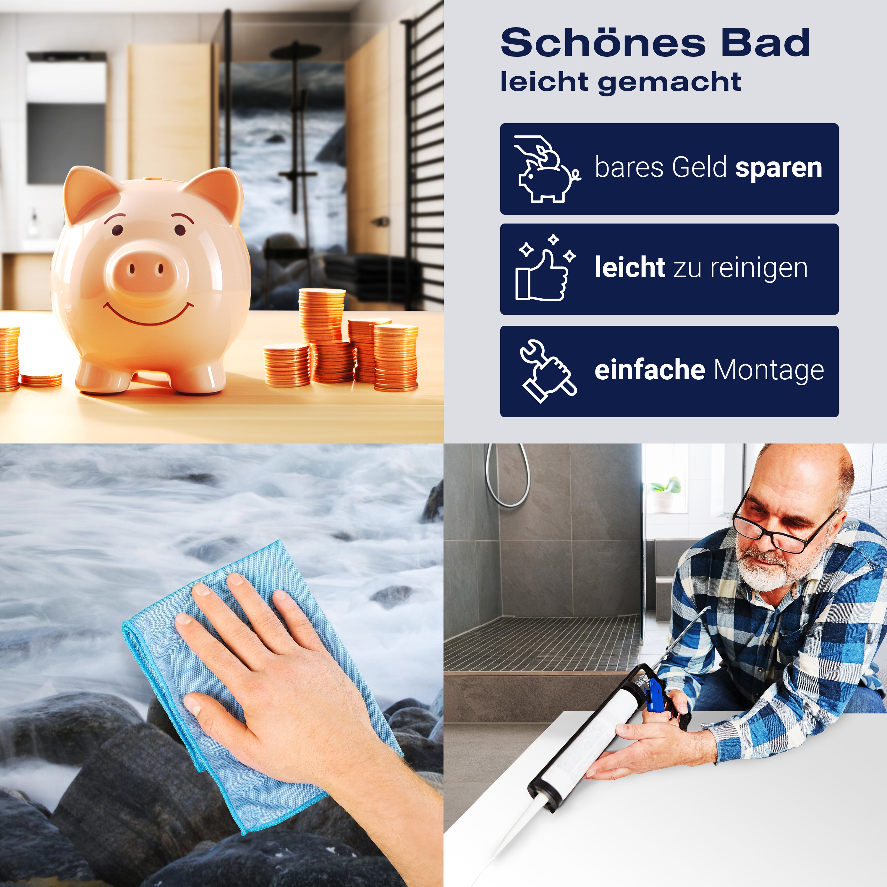 Diese Materialien bieten im Vergleich zu traditionellen Fliesen mehrere Vorteile. Sie haben eine fugenlose Oberfläche, was bedeutet, dass sie weniger anfällig für Schimmelbildung und leichter zu reinigen sind, da sich Schmutz und Kalk nicht in Fugen festsetzen können. Darüber hinaus ermöglichen sie eine schnelle und einfache Renovierung, da sie direkt über bestehenden Fliesen montiert werden können, was Zeit und Kosten spart