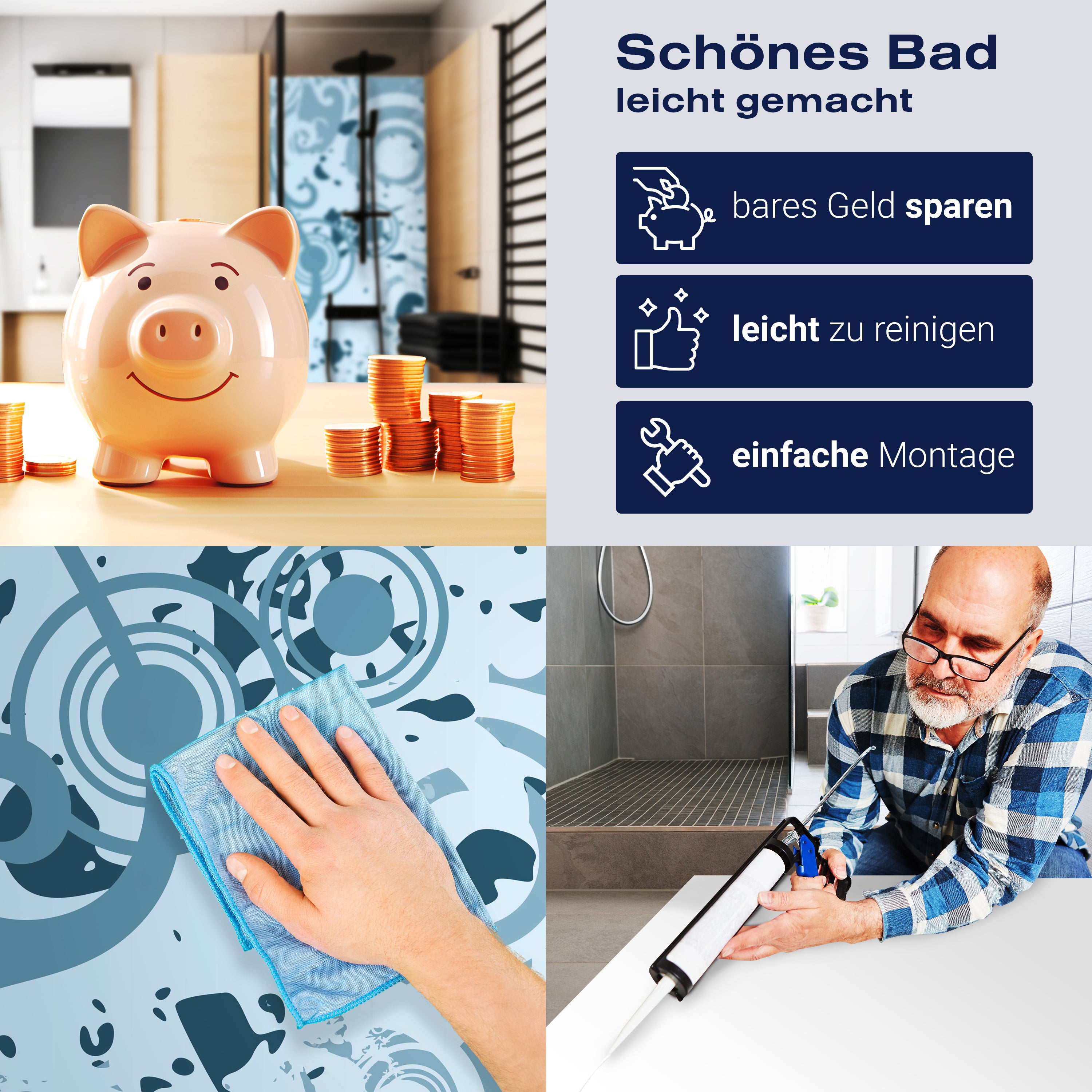 Diese Materialien bieten im Vergleich zu traditionellen Fliesen mehrere Vorteile. Sie haben eine fugenlose Oberfläche, was bedeutet, dass sie weniger anfällig für Schimmelbildung und leichter zu reinigen sind, da sich Schmutz und Kalk nicht in Fugen festsetzen können. Darüber hinaus ermöglichen sie eine schnelle und einfache Renovierung, da sie direkt über bestehenden Fliesen montiert werden können, was Zeit und Kosten spart