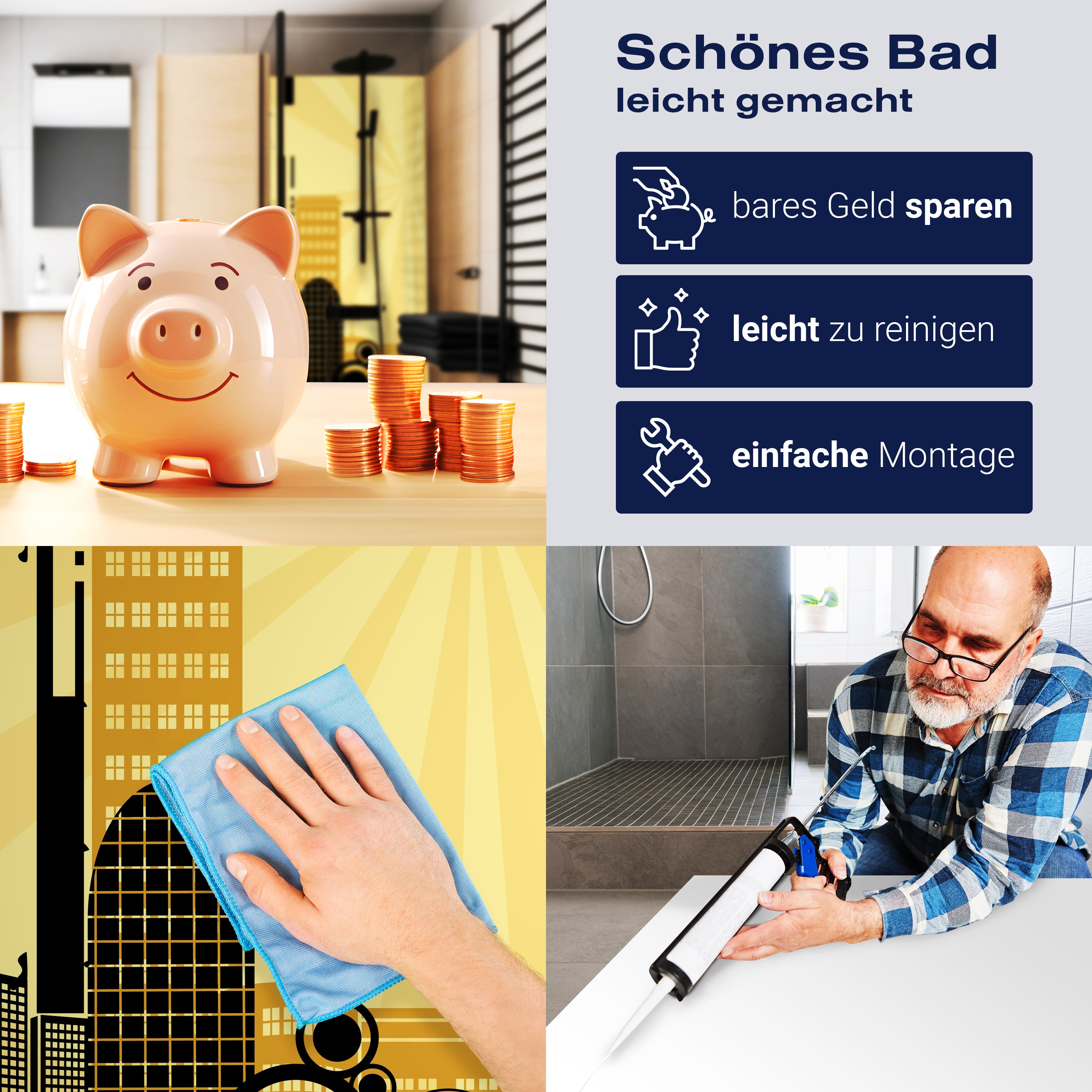 Diese Materialien bieten im Vergleich zu traditionellen Fliesen mehrere Vorteile. Sie haben eine fugenlose Oberfläche, was bedeutet, dass sie weniger anfällig für Schimmelbildung und leichter zu reinigen sind, da sich Schmutz und Kalk nicht in Fugen festsetzen können. Darüber hinaus ermöglichen sie eine schnelle und einfache Renovierung, da sie direkt über bestehenden Fliesen montiert werden können, was Zeit und Kosten spart