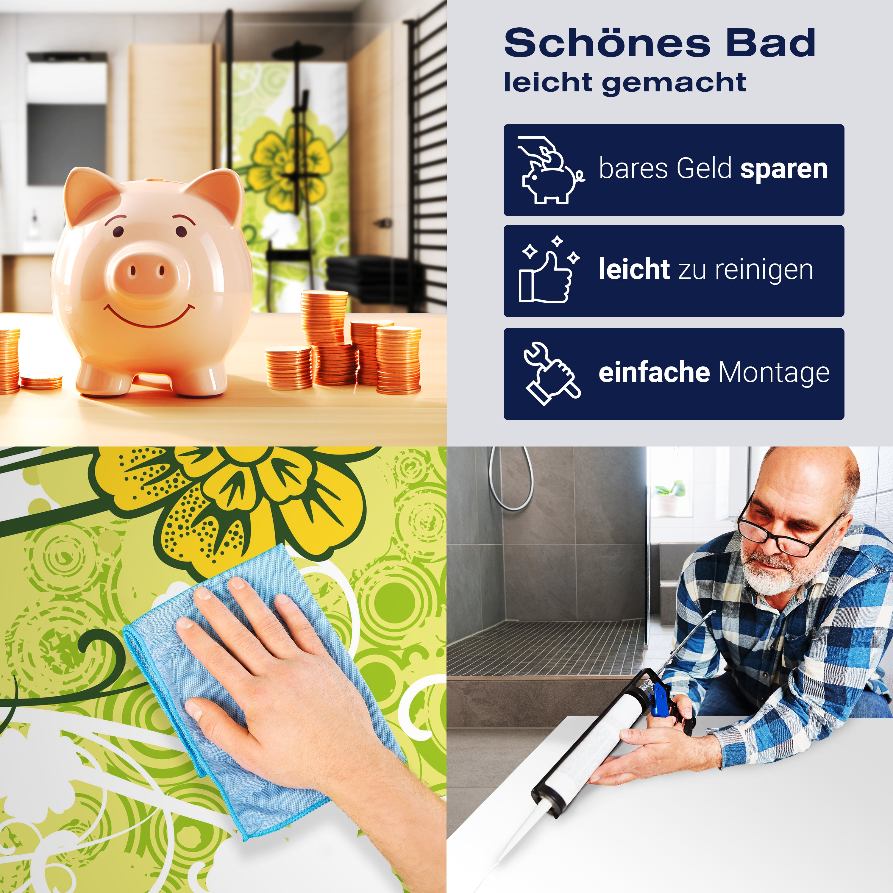 Bist du es leid, auf die langweiligen, schwer zu reinigende Fliesen in deiner Dusche zu schauen? Stell dir vor, wie dein Bad mit einer stilvollen, modernen Rückwand zum Leben erwacht! Unsere Duschwand 'Vanessa Retro Blüten' ist nicht nur ein optisches Highlight, sondern auch praktisch und pflegeleicht.