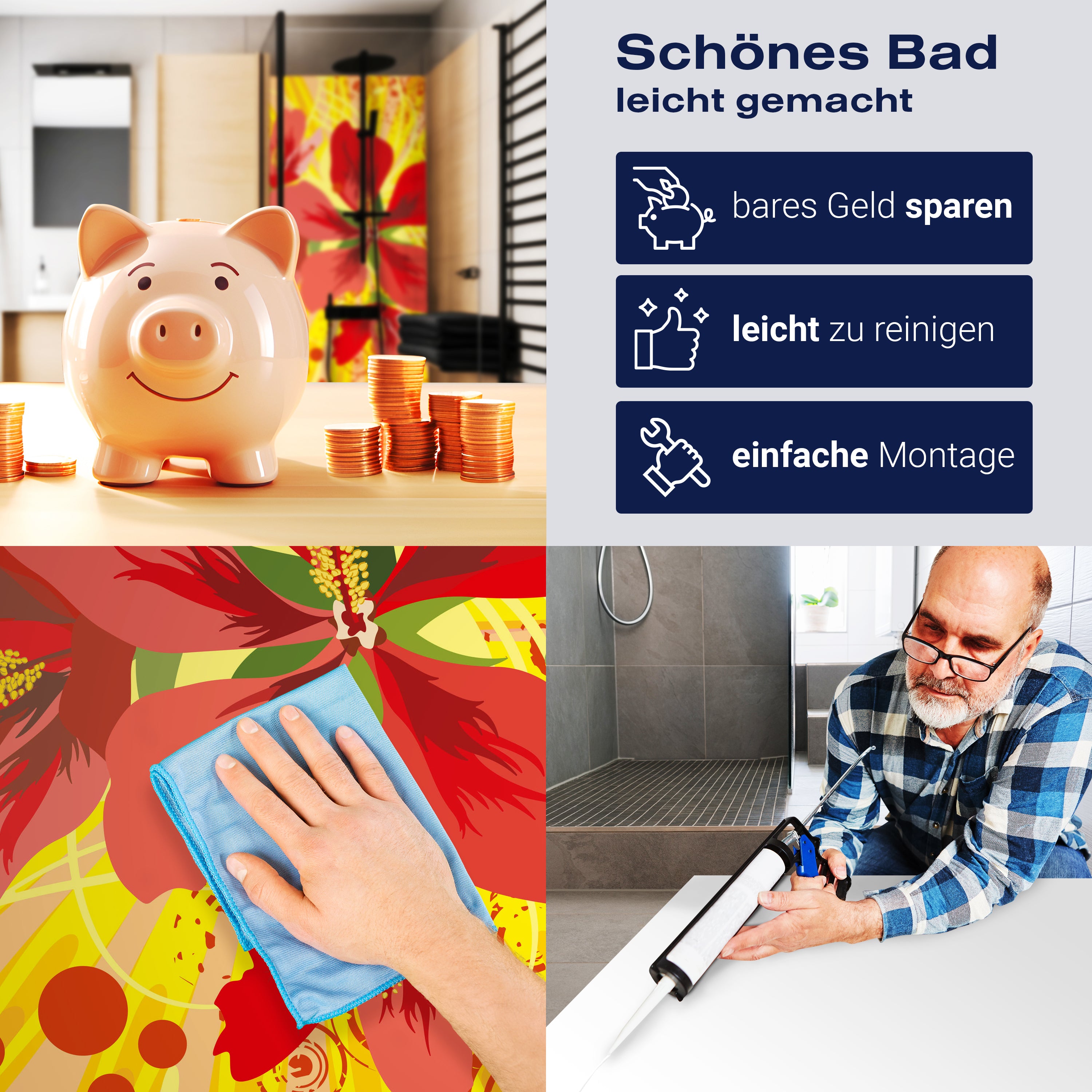 Diese Materialien bieten im Vergleich zu traditionellen Fliesen mehrere Vorteile. Sie haben eine fugenlose Oberfläche, was bedeutet, dass sie weniger anfällig für Schimmelbildung und leichter zu reinigen sind, da sich Schmutz und Kalk nicht in Fugen festsetzen können. Darüber hinaus ermöglichen sie eine schnelle und einfache Renovierung, da sie direkt über bestehenden Fliesen montiert werden können, was Zeit und Kosten spart