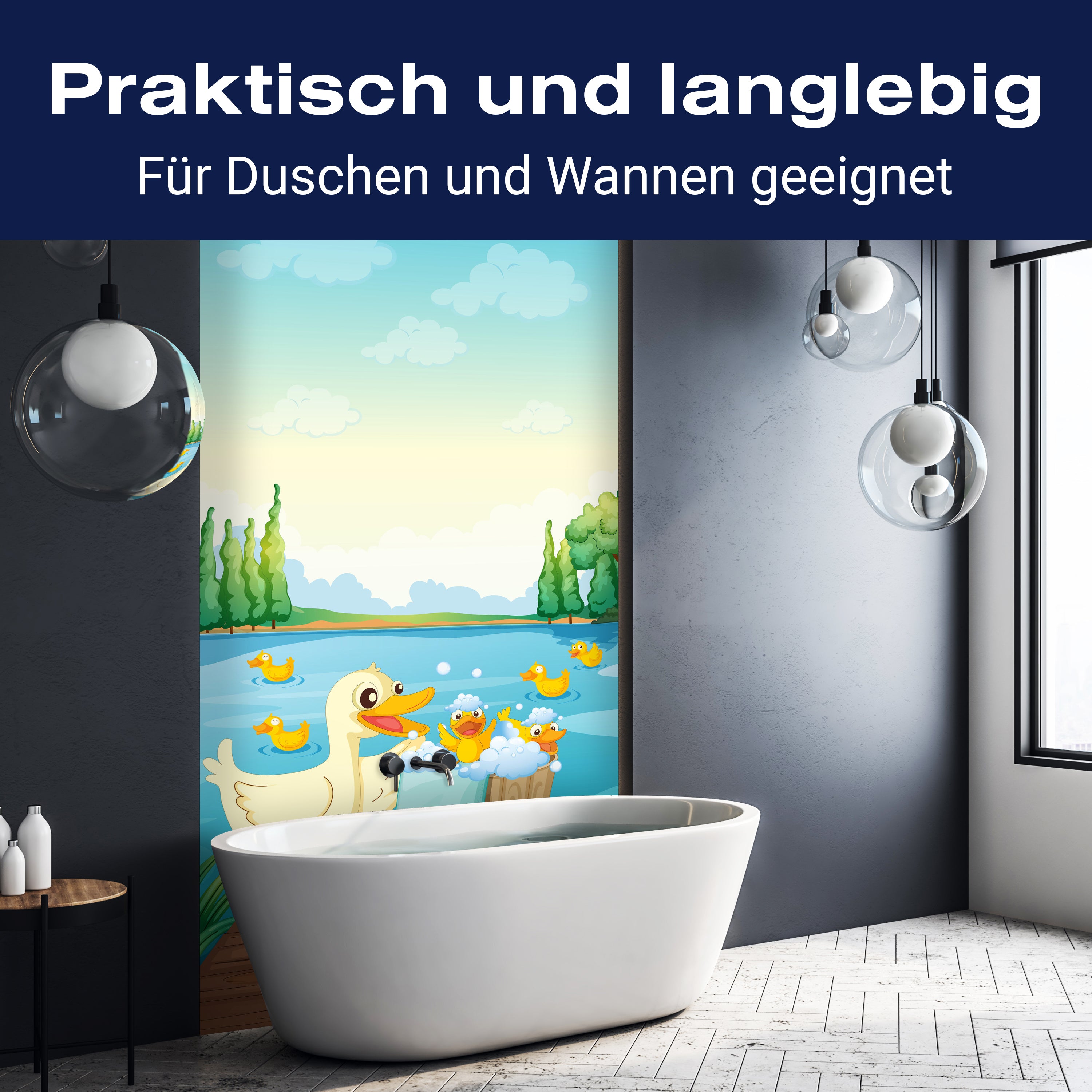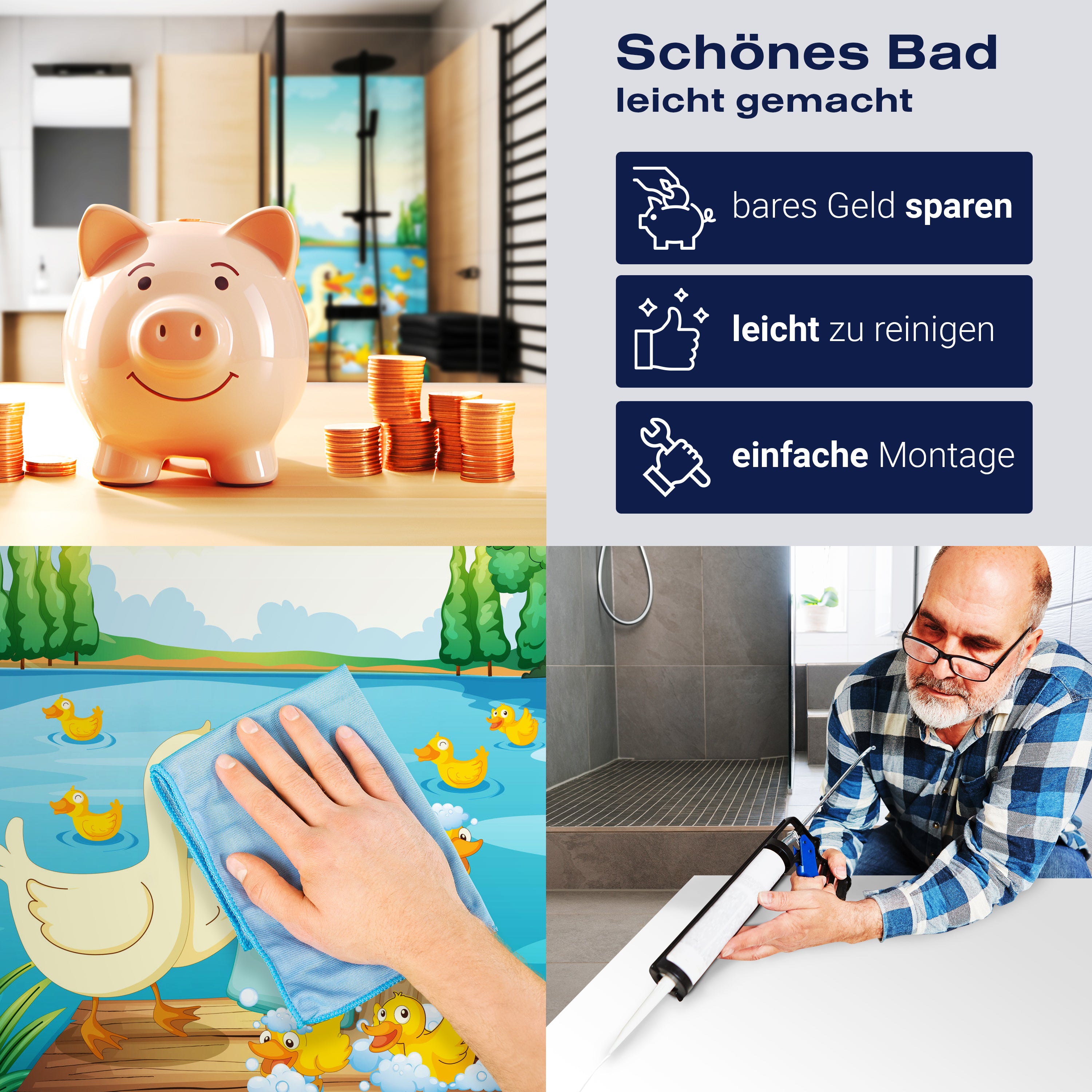 Bist du es leid, auf die langweiligen, schwer zu reinigende Fliesen in deiner Dusche zu schauen? Stell dir vor, wie dein Bad mit einer stilvollen, modernen Rückwand zum Leben erwacht! Unsere Duschwand 'Waschtag Kinder' ist nicht nur ein optisches Highlight, sondern auch praktisch und pflegeleicht.