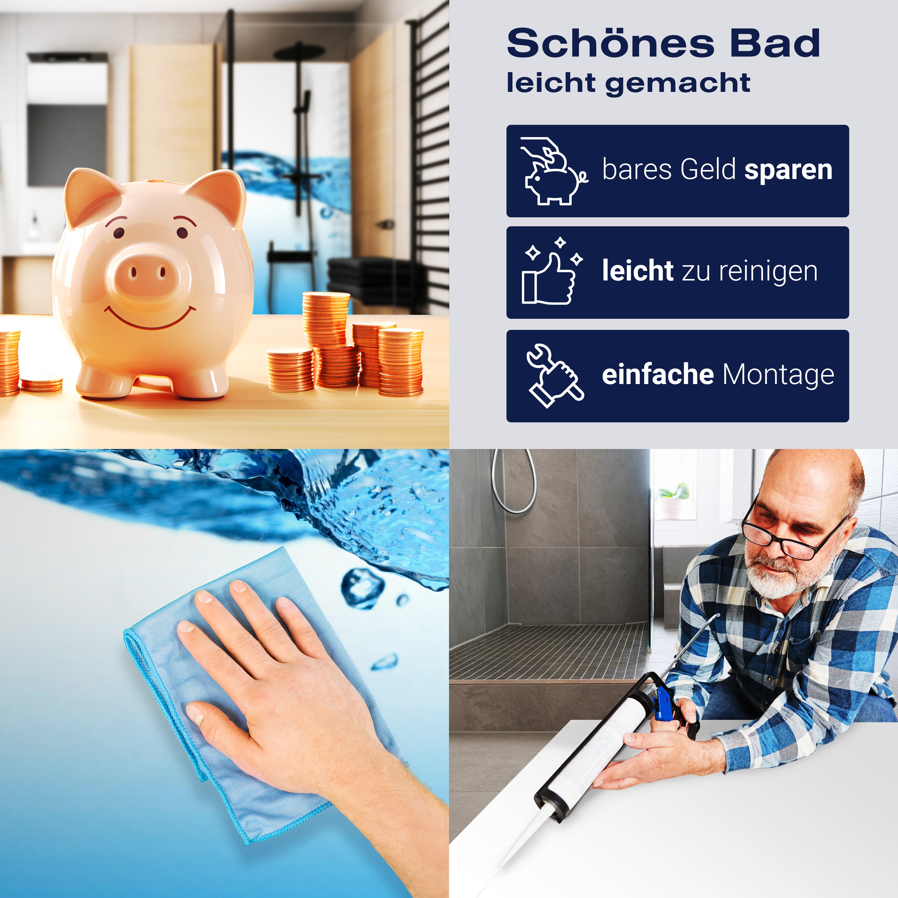 Diese Materialien bieten im Vergleich zu traditionellen Fliesen mehrere Vorteile. Sie haben eine fugenlose Oberfläche, was bedeutet, dass sie weniger anfällig für Schimmelbildung und leichter zu reinigen sind, da sich Schmutz und Kalk nicht in Fugen festsetzen können. Darüber hinaus ermöglichen sie eine schnelle und einfache Renovierung, da sie direkt über bestehenden Fliesen montiert werden können, was Zeit und Kosten spart