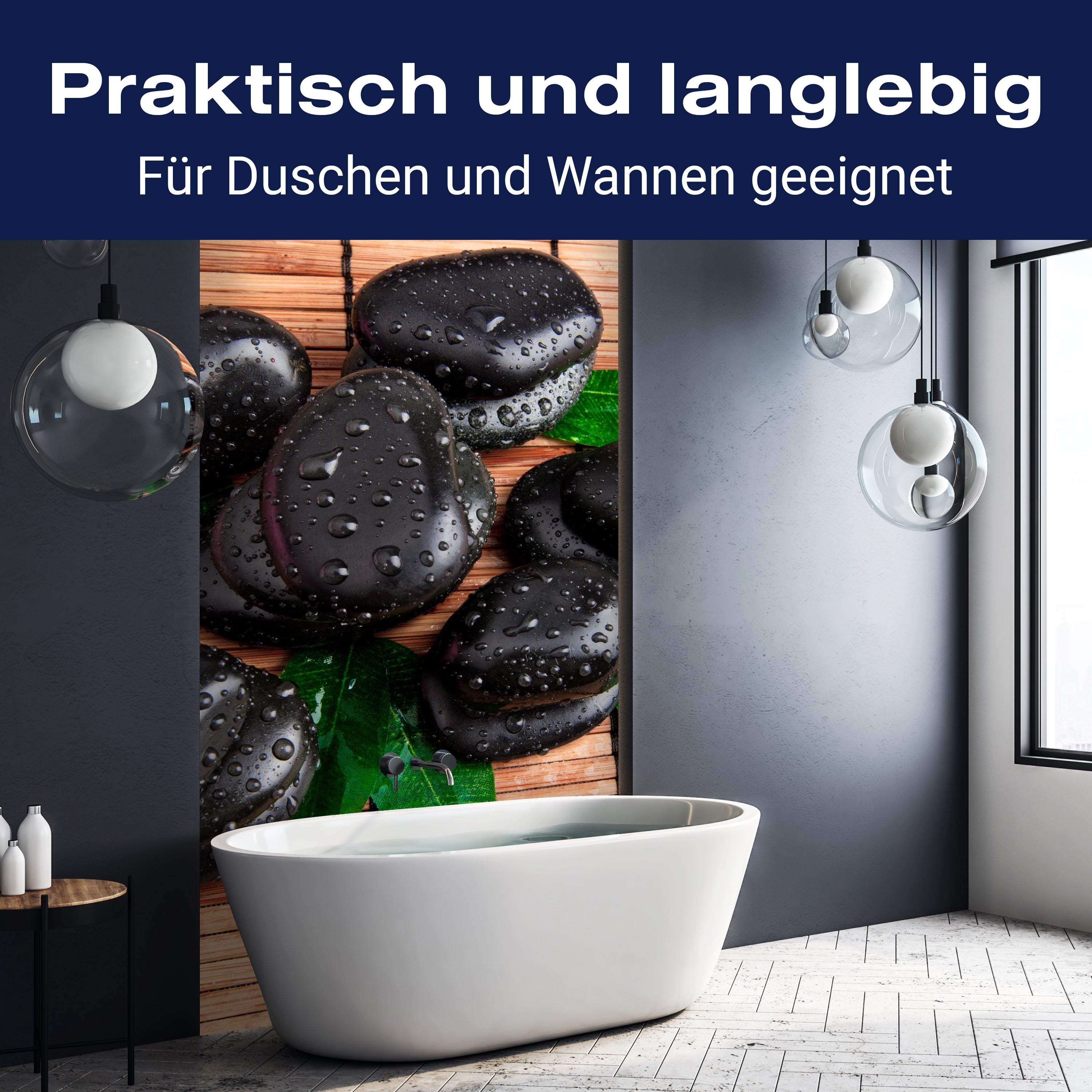 Bist du es leid, auf die langweiligen, schwer zu reinigende Fliesen in deiner Dusche zu schauen? Stell dir vor, wie dein Bad mit einer stilvollen, modernen Rückwand zum Leben erwacht! Unsere Duschwand 'Zen Steine und Blätter' ist nicht nur ein optisches Highlight, sondern auch praktisch und pflegeleicht.