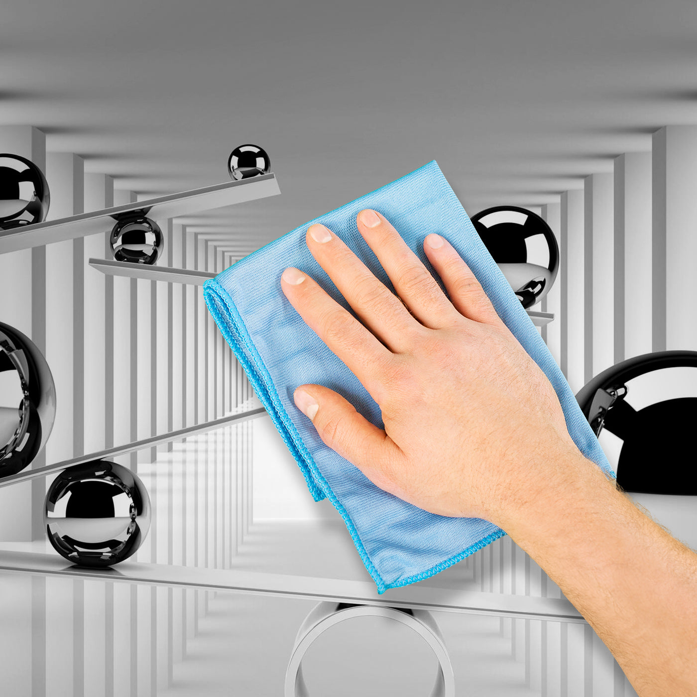- Reinige eventuelle Verschmutzungen oder Kleberreste sofort mit einem feuchten Schwamm oder Tuch.