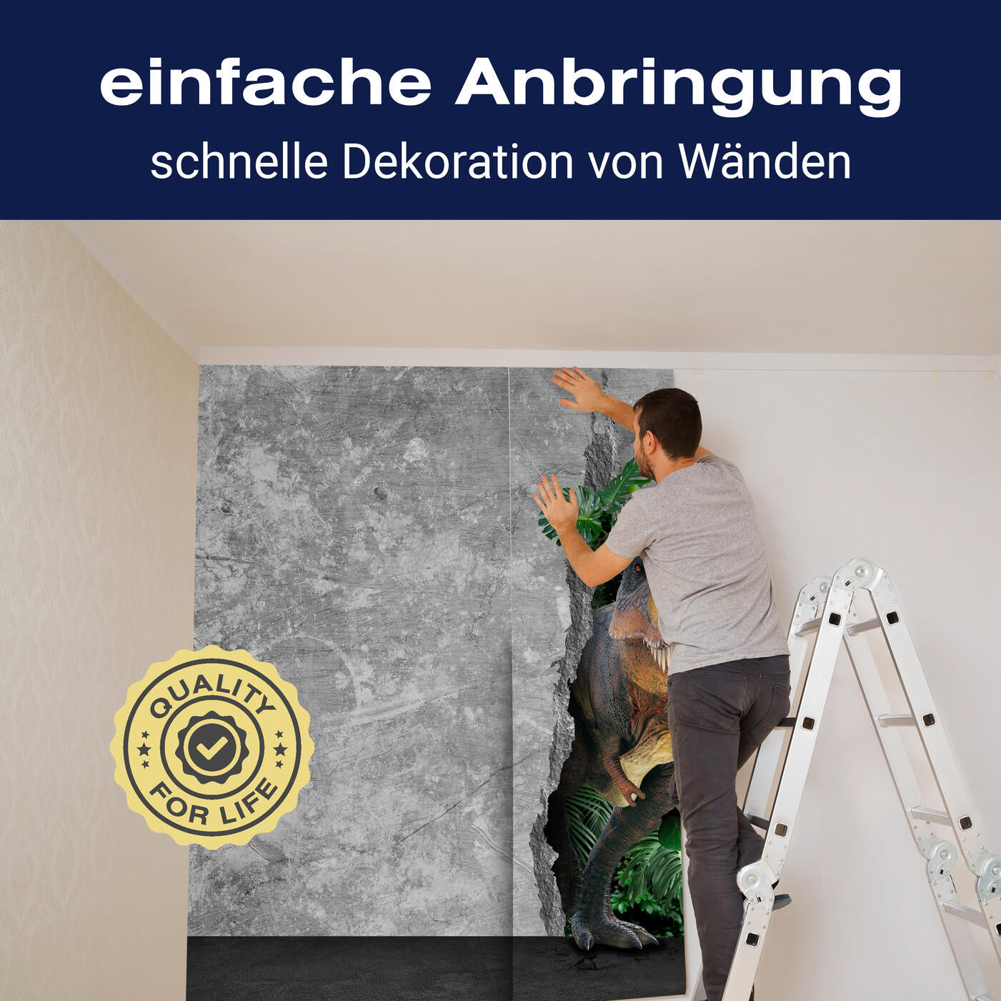 Träumst Du davon, Deine Wände in eine beeindruckende Kunstgalerie zu verwandeln? Mit unserer hochwertigen Fototapete 3D Optik T-Rex Wanddurchbruch M6622 ist es jetzt möglich! Jede Wand wird zu einer Leinwand Deiner Kreativität.
