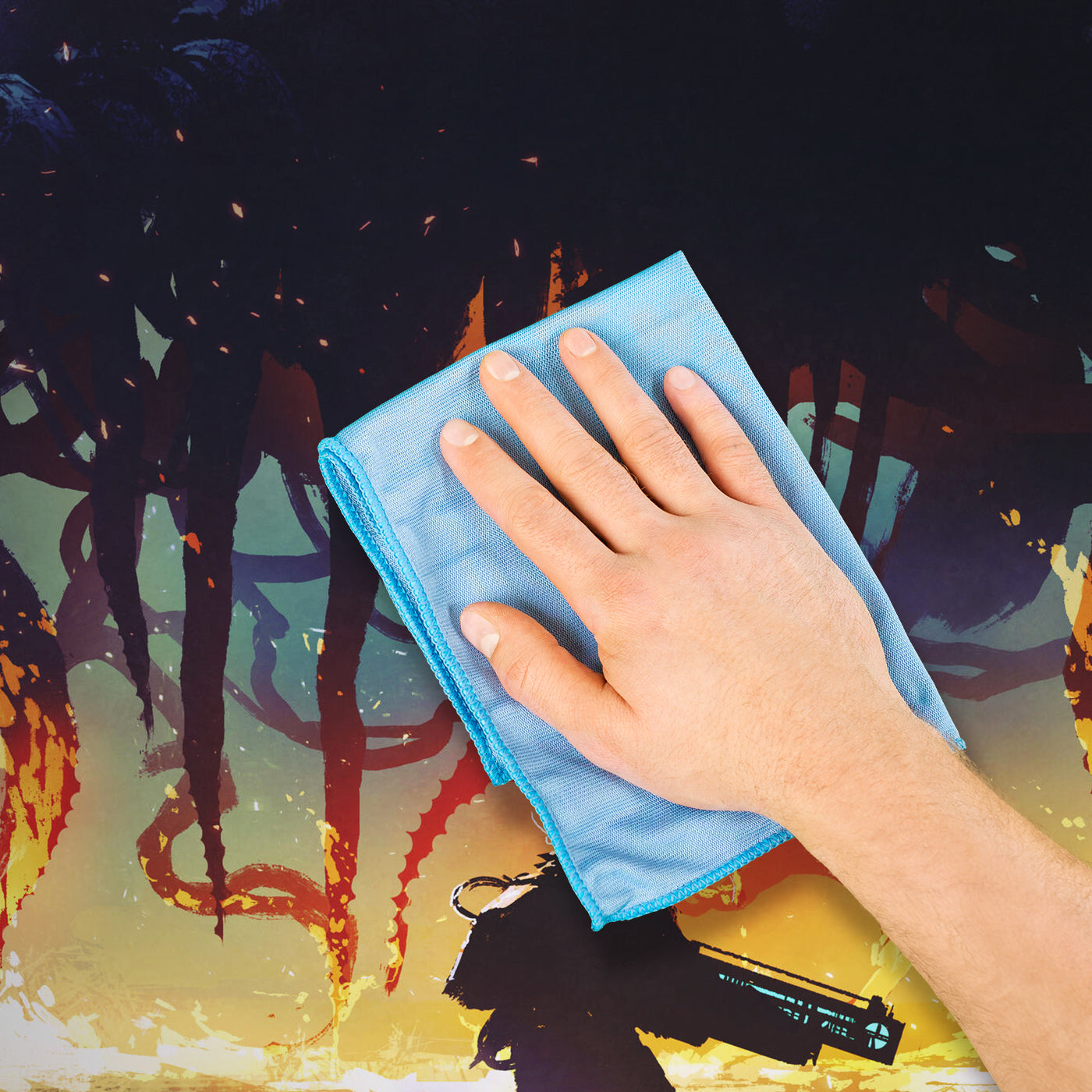- Reinige eventuelle Verschmutzungen oder Kleberreste sofort mit einem feuchten Schwamm oder Tuch.