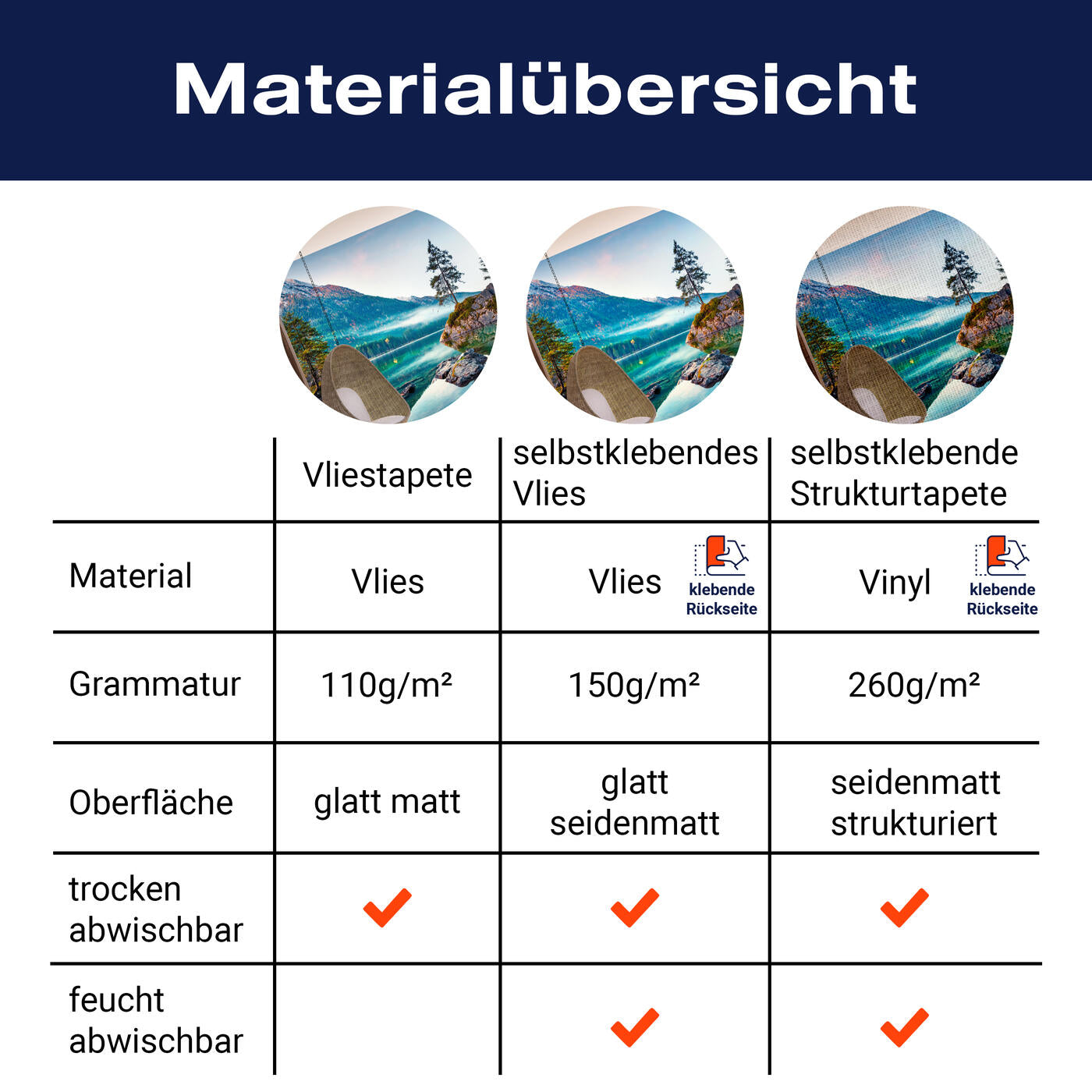 - Selbstklebendes Vlies 150g/m²: Einfach anzubringen, perfekt für Mietwohnungen.