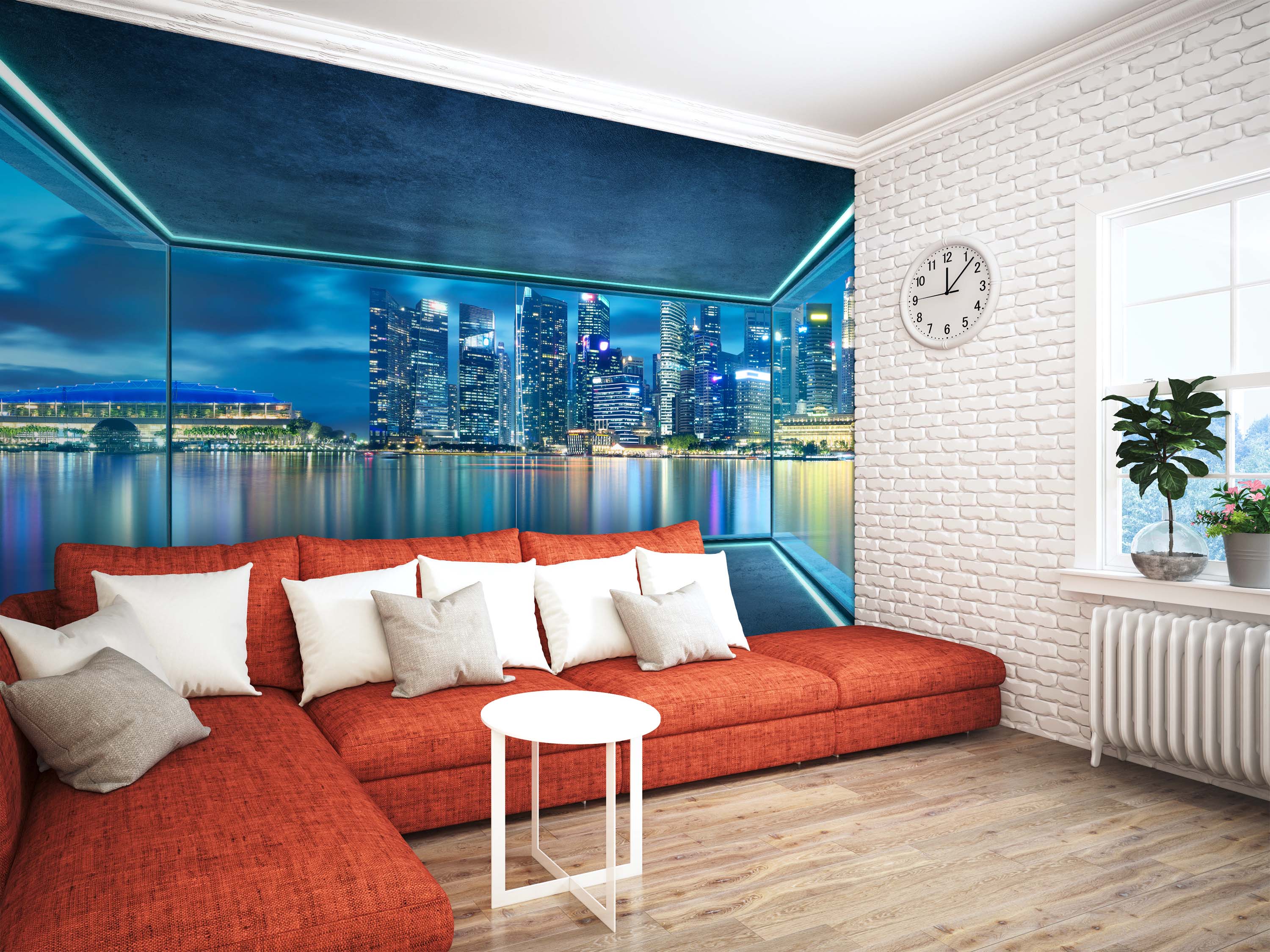 FOTOTAPETE Ausblick Fenster Stadt Nacht Skyline