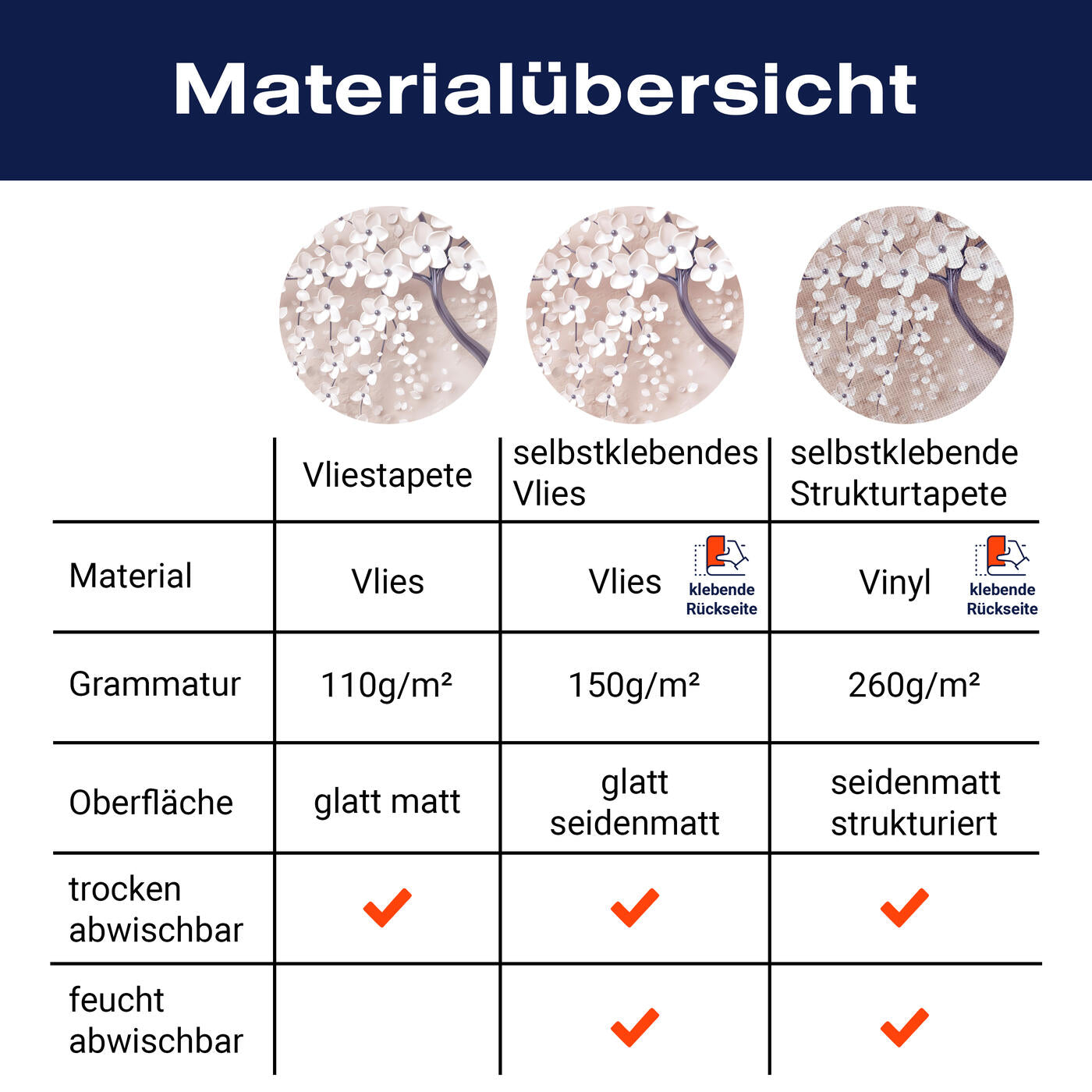 - Selbstklebendes Vlies 150g/m²: Einfach anzubringen, perfekt für Mietwohnungen.